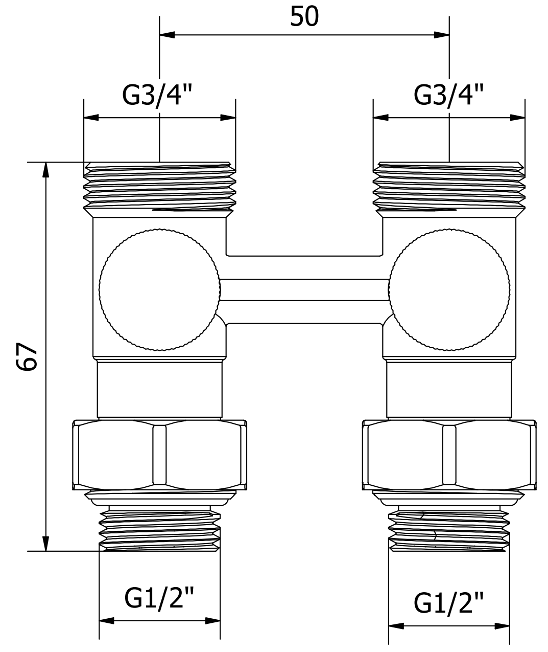 Spodné pripojenie s rozstupom 50 mm