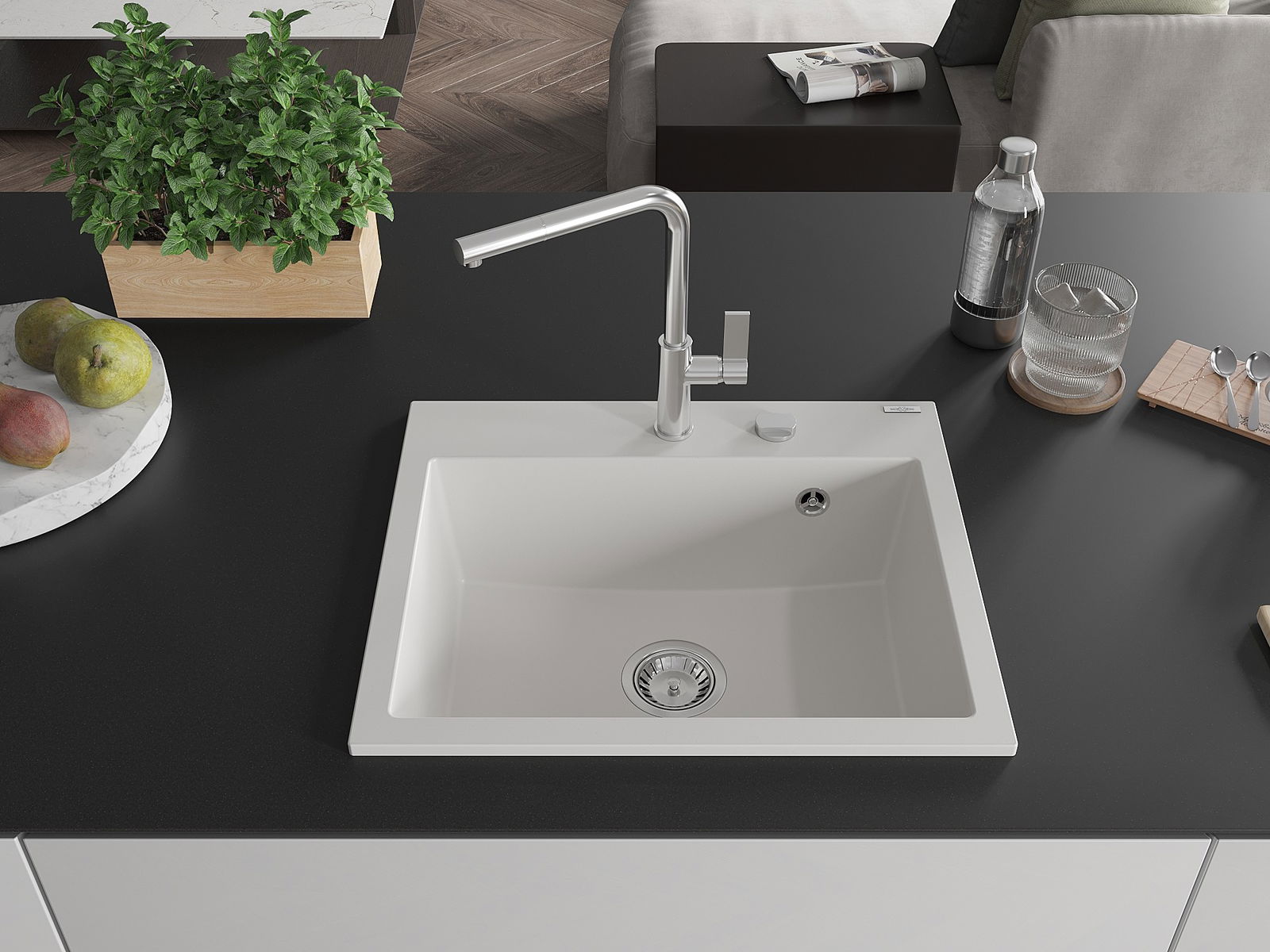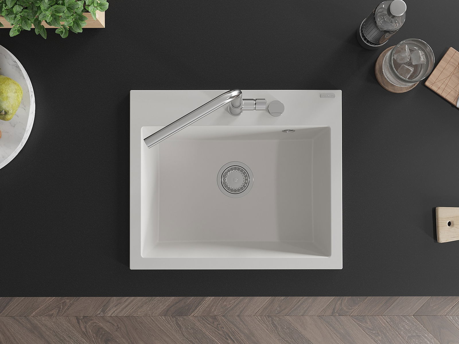 Povrch umývadla je odolný voči škvrnám a sfarbeniu, vďaka čomu sa ľahko čistí a zachováva si svoju farbu po dlhú dobu. Estetický a prakticky dopĺňajúci každú kuchyňu.