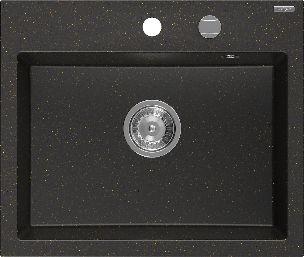 Mexen Oscar žulový drez 1-komorový 580 x 490 mm, čierny/zlatý metalik, sifón chróm - 6519581000-75