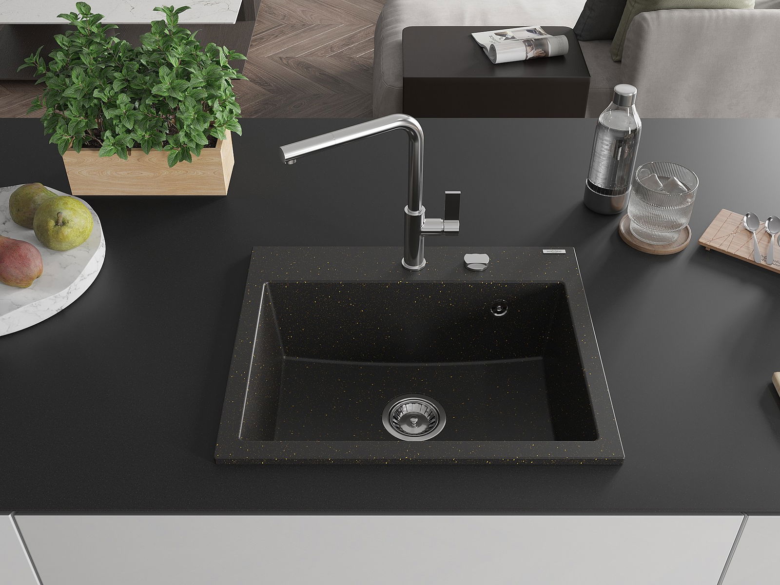 Povrch umývadla je odolný voči škvrnám a sfarbeniu, vďaka čomu sa ľahko čistí a zachováva si svoju farbu po dlhú dobu. Estetický a prakticky dopĺňajúci každú kuchyňu.
