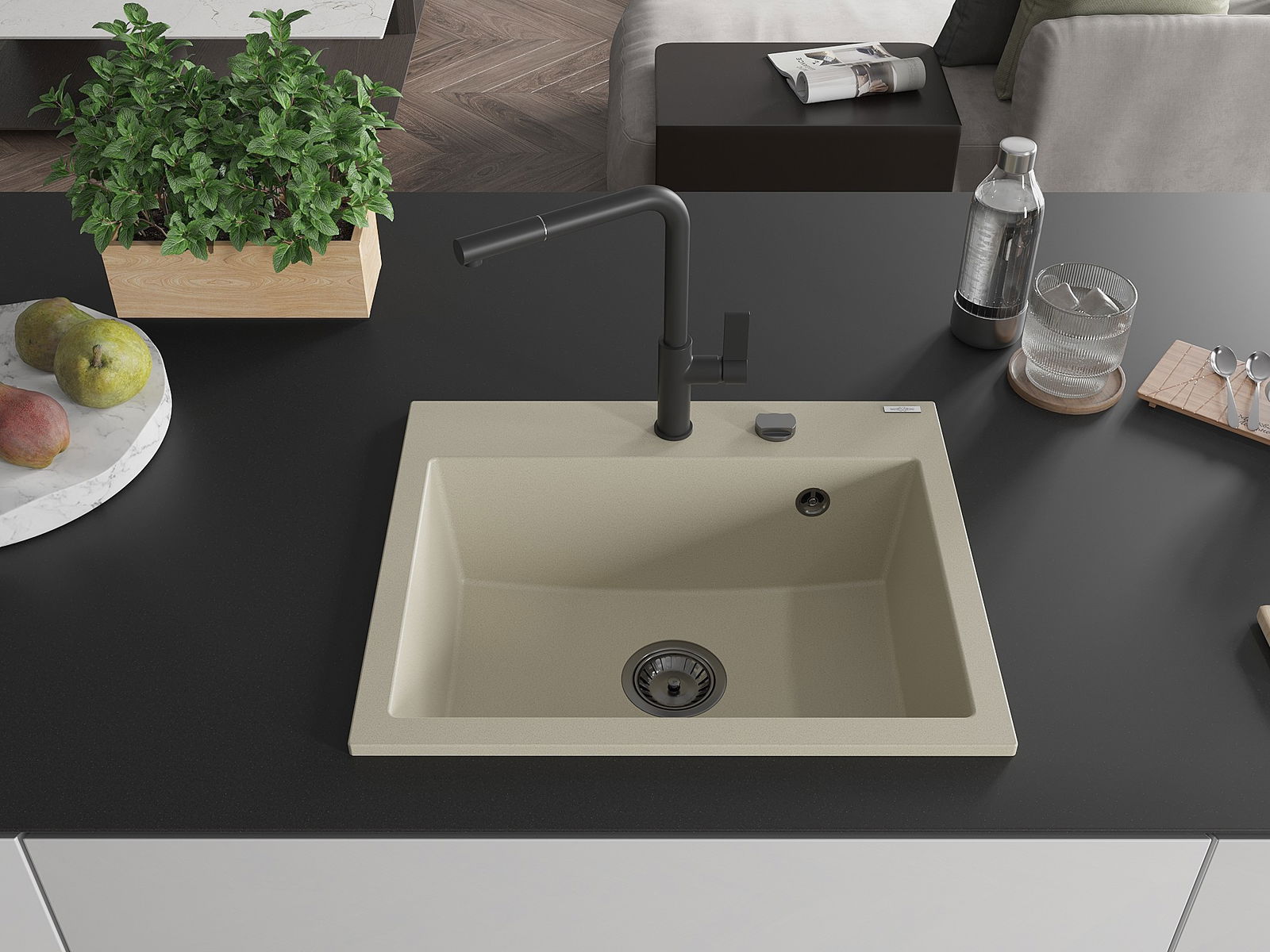 Povrch umývadla je odolný voči škvrnám a sfarbeniu, vďaka čomu sa ľahko čistí a zachováva si svoju farbu po dlhú dobu. Estetický a prakticky dopĺňajúci každú kuchyňu.