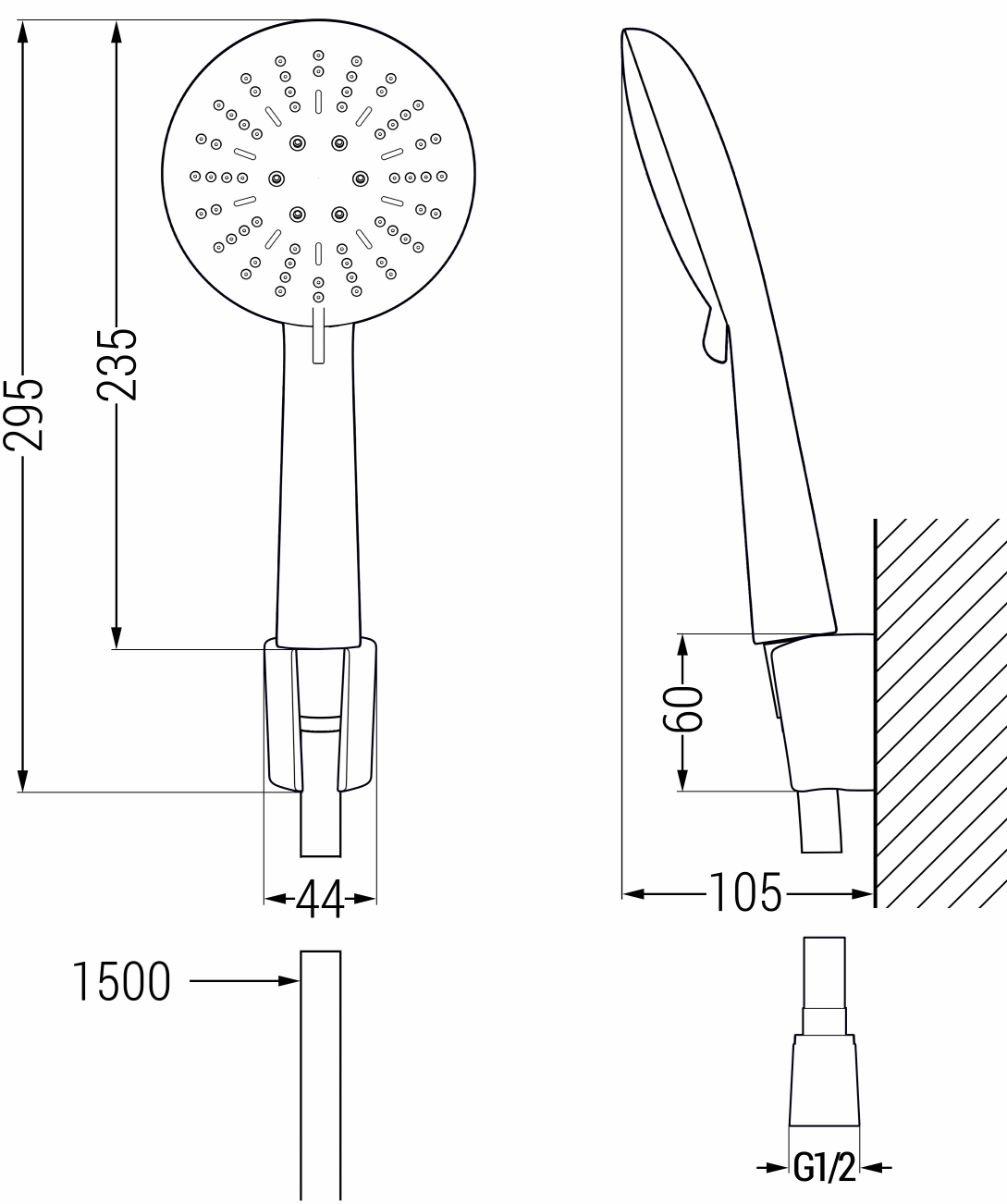 Sprchovacia ruka má tri typy potoka, ktoré sa zmenili spínačom. Poskytuje plnú slobodu a schopnosť prispôsobiť sa potrebám používateľa a ponúka jemnejší alebo silnejší a koncentrovanejší prúd vody.