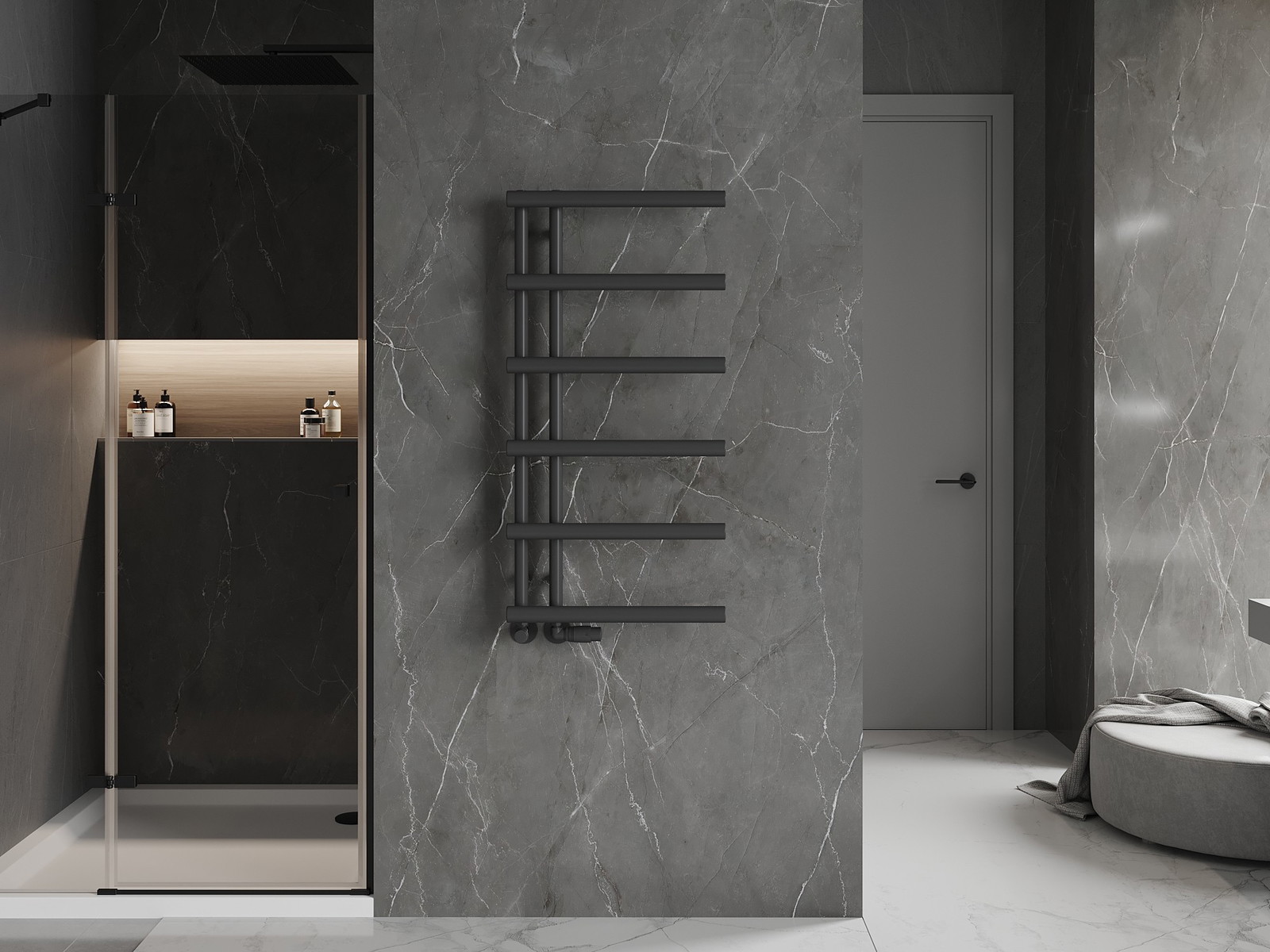 Mexen Jukon dekoratívny kúpeľňový radiátor 988 x 500 mm je ideálne riešenie pre tých, ktorí si cenia funkčnosť a štýl v kúpeľni. Vyrobený z ocele v antracitovej farbe RAL 7016, pôsobí moderne a elegantne. Vďaka výhrevnému výkonu 461 W a maximálnej pracovnej teplote 95°C poskytuje pohodlné teplo. Odolný voči korózii s možnosťou montáže ohrievača, ľahko sa inštaluje so vzdialenosťou pripojenia 8 cm. V súprave nájdeme zátku, odvzdušňovač a montážnu sadu.