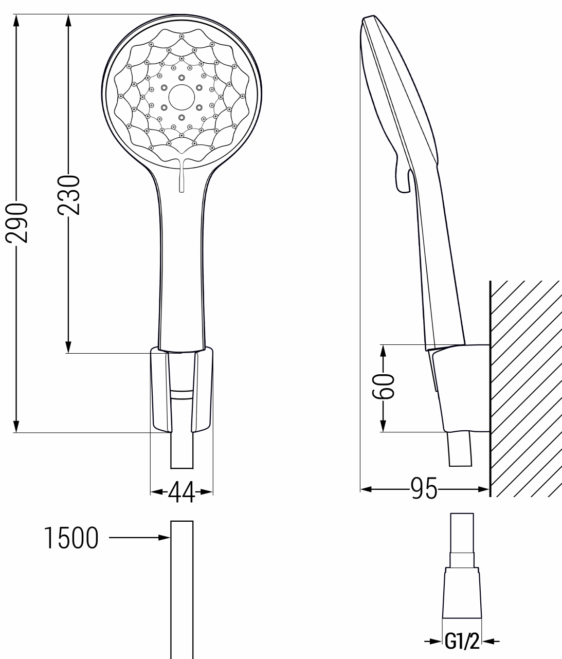Sprchovacia ruka má tri typy potoka, ktoré sa zmenili spínačom. Poskytuje plnú slobodu a schopnosť prispôsobiť sa potrebám používateľa a ponúka jemnejší alebo silnejší a koncentrovanejší prúd vody.