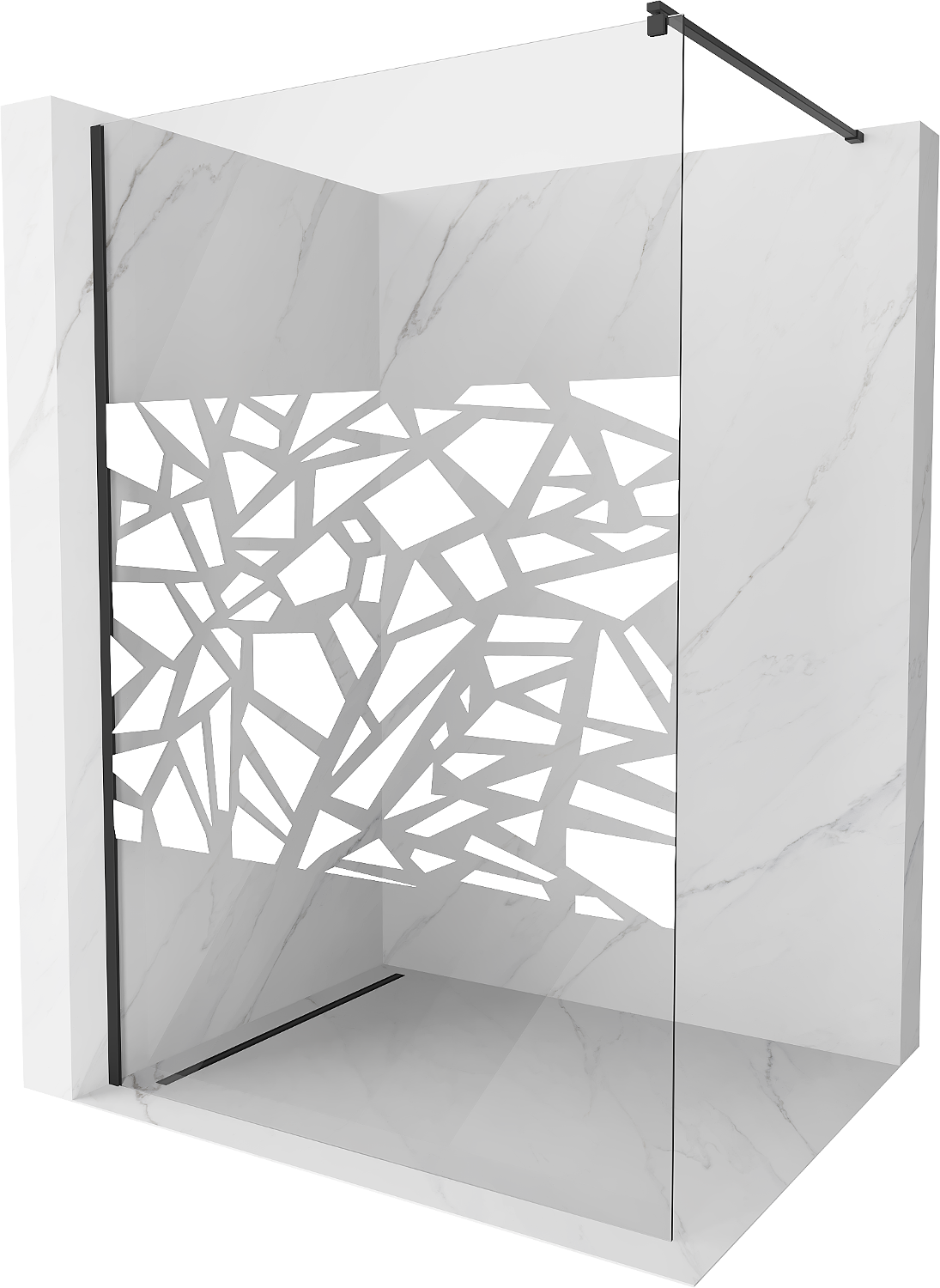 Mexen Kioto sprchová stena Walk-in 90 x 200 cm, biely vzor 8 mm, čierna - 800-090-101-70-85