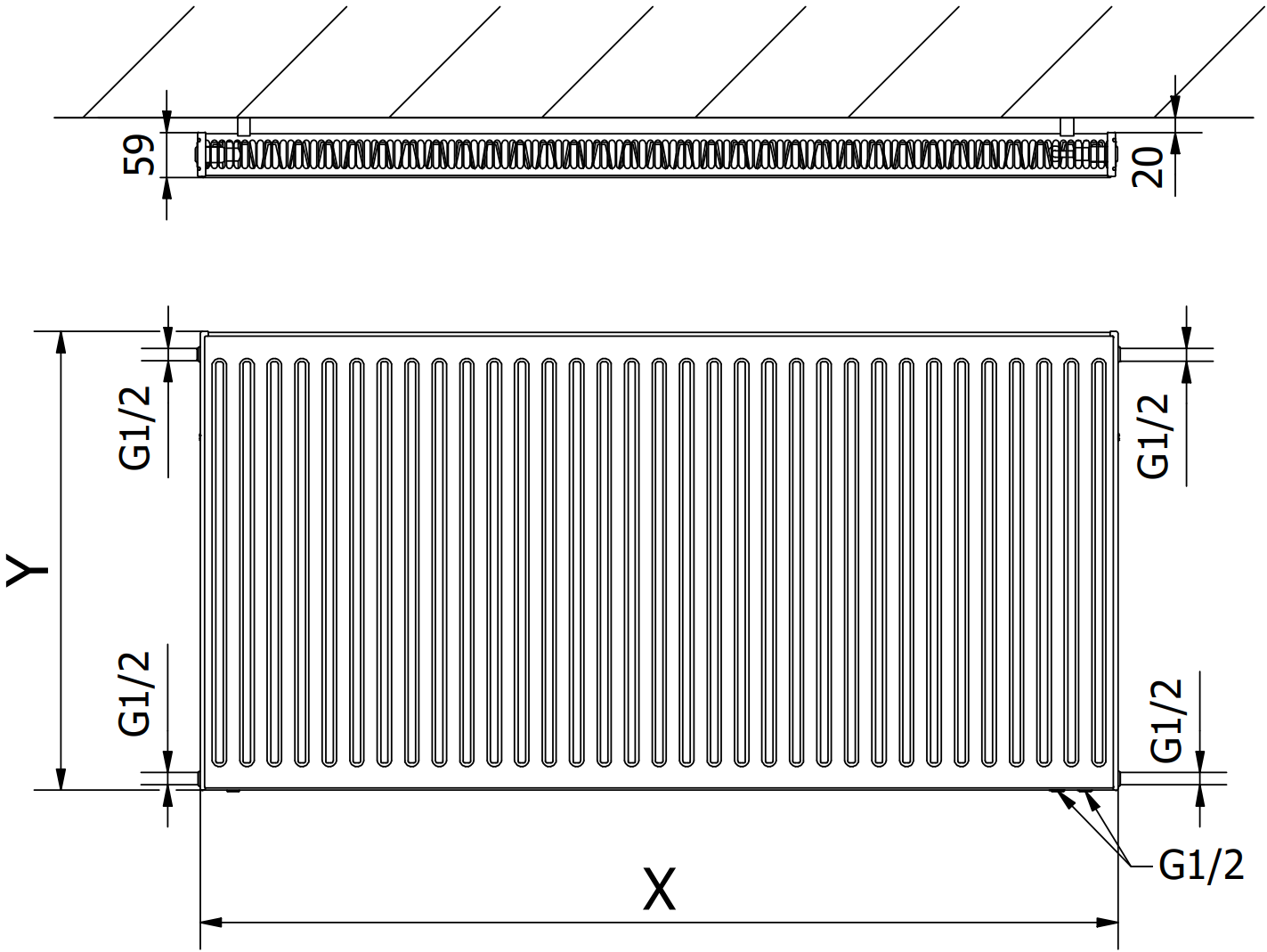 Fotografie zobrazujú radiátor vo veľkosti 600 x 1200 mm.