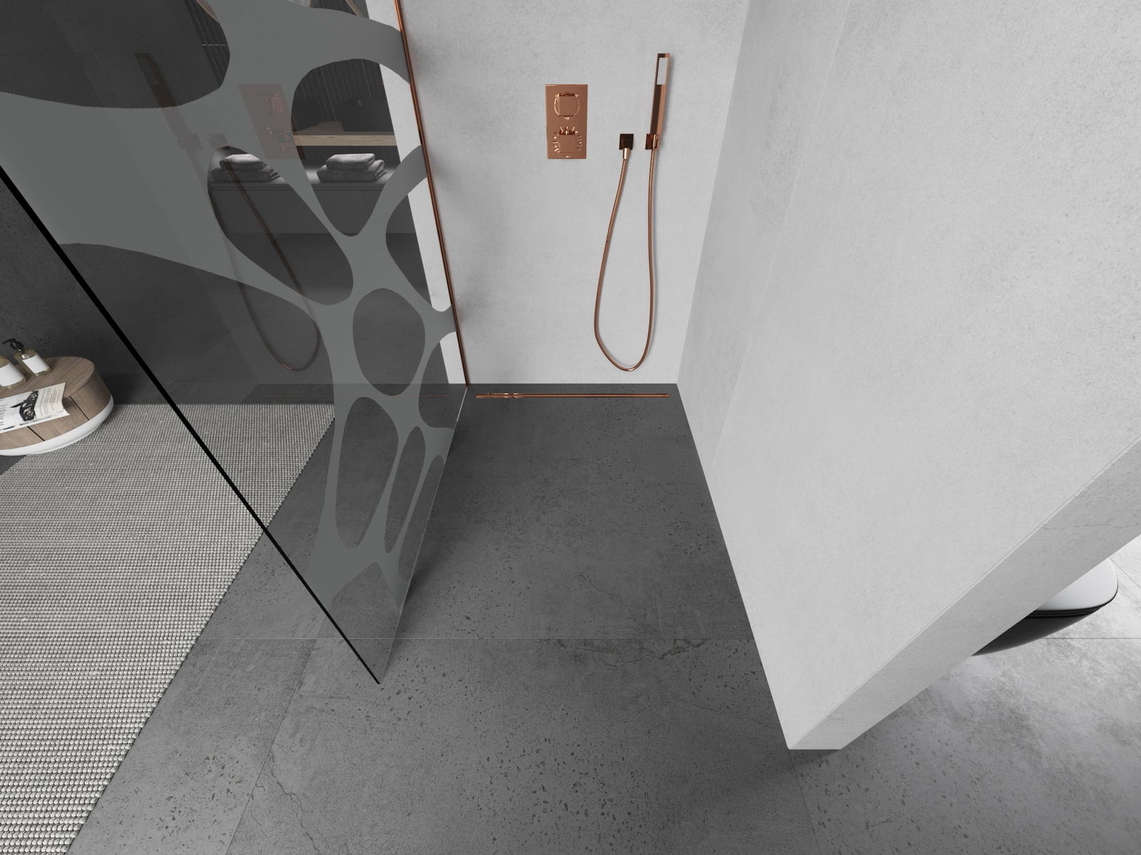 Mexen Kioto sprchová stena Walk-in 70 x 200 cm, biela vlna 8 mm, ružové zlato - 800-070-101-60-97