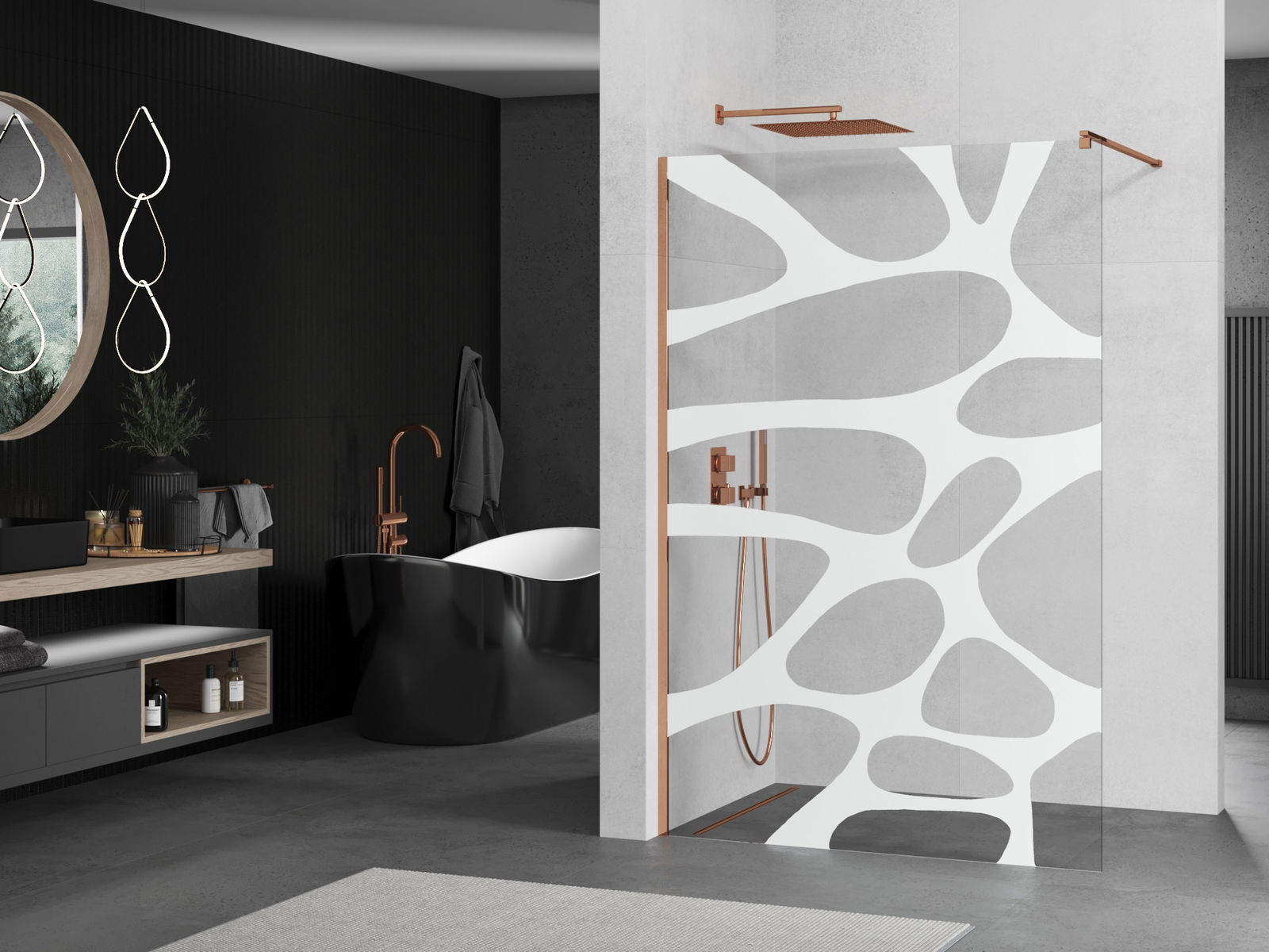 Mexen Kioto sprchová stena Walk-in 130 x 200 cm, biela vlna 8 mm, ružové zlato - 800-130-101-60-97