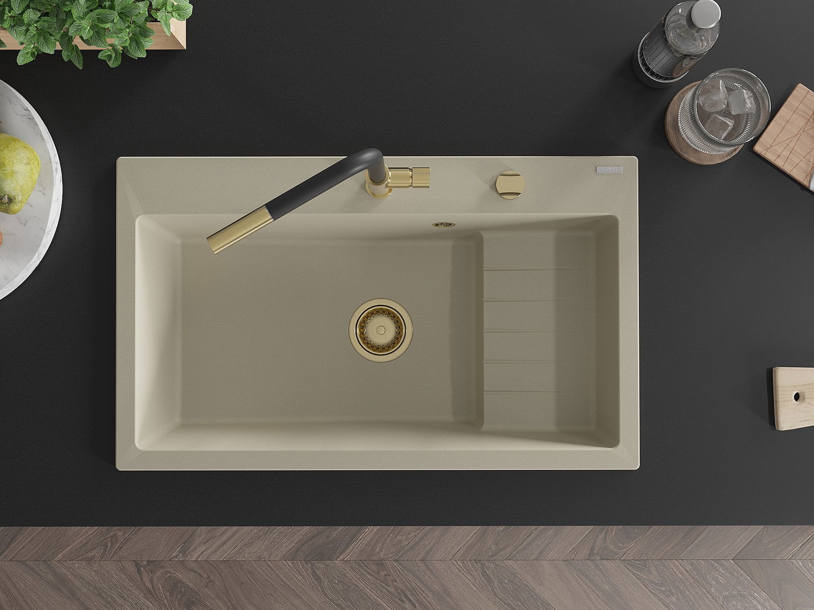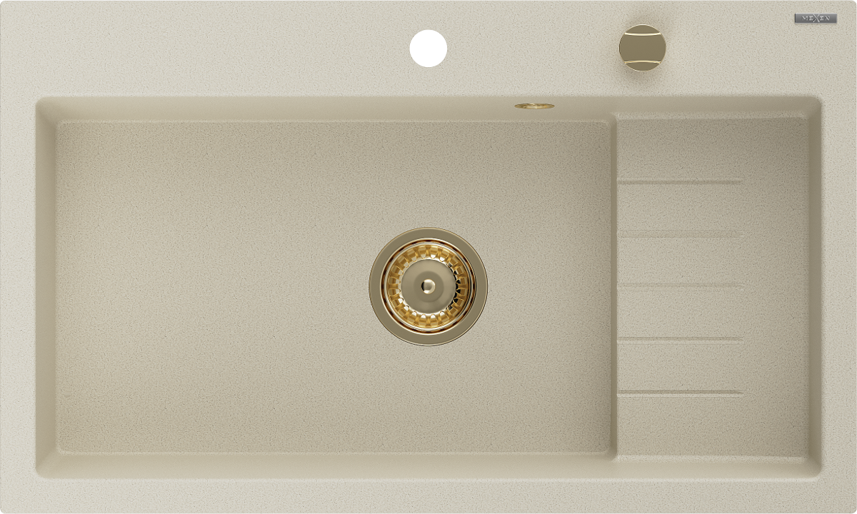 Povrch kuchynského drezu je odolný voči škvrnám a zafarbeniu, vďaka čomu sa ľahko udržiava a zachováva svoju farbu počas dlhého obdobia používania. Estetický a praktický doplnok pre každú kuchyňu.