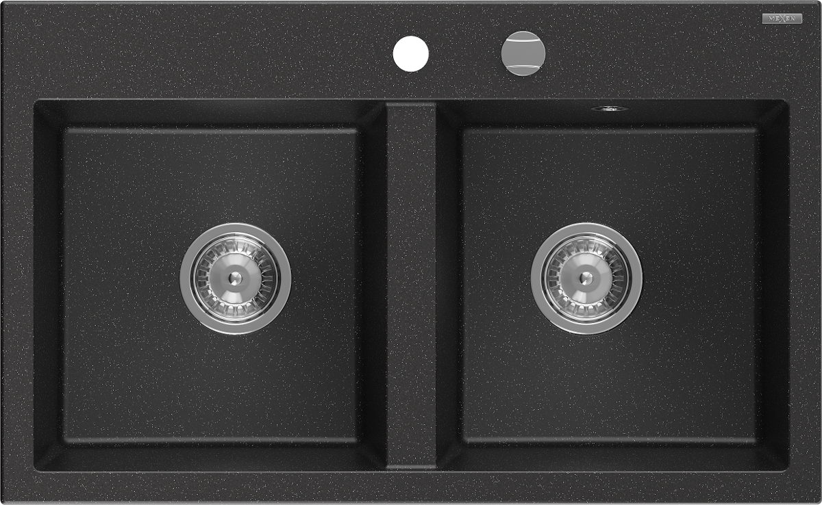Mexen Hektor žulový kuchynský drez 2-komorový 800 x 480 mm, čierny/strieborný metalik, sifón chróm - 6521802000-73