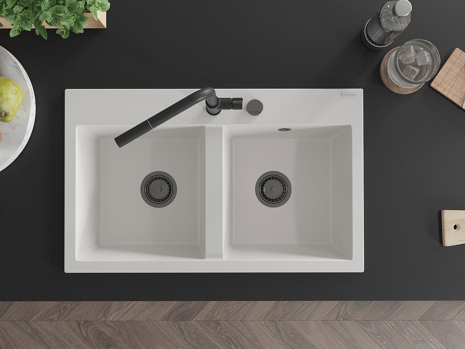 Povrch kuchynského drezu je odolný voči škvrnám a zafarbeniu, vďaka čomu sa ľahko udržiava a zachováva svoju farbu počas dlhého obdobia používania. Estetický a praktický doplnok pre každú kuchyňu.