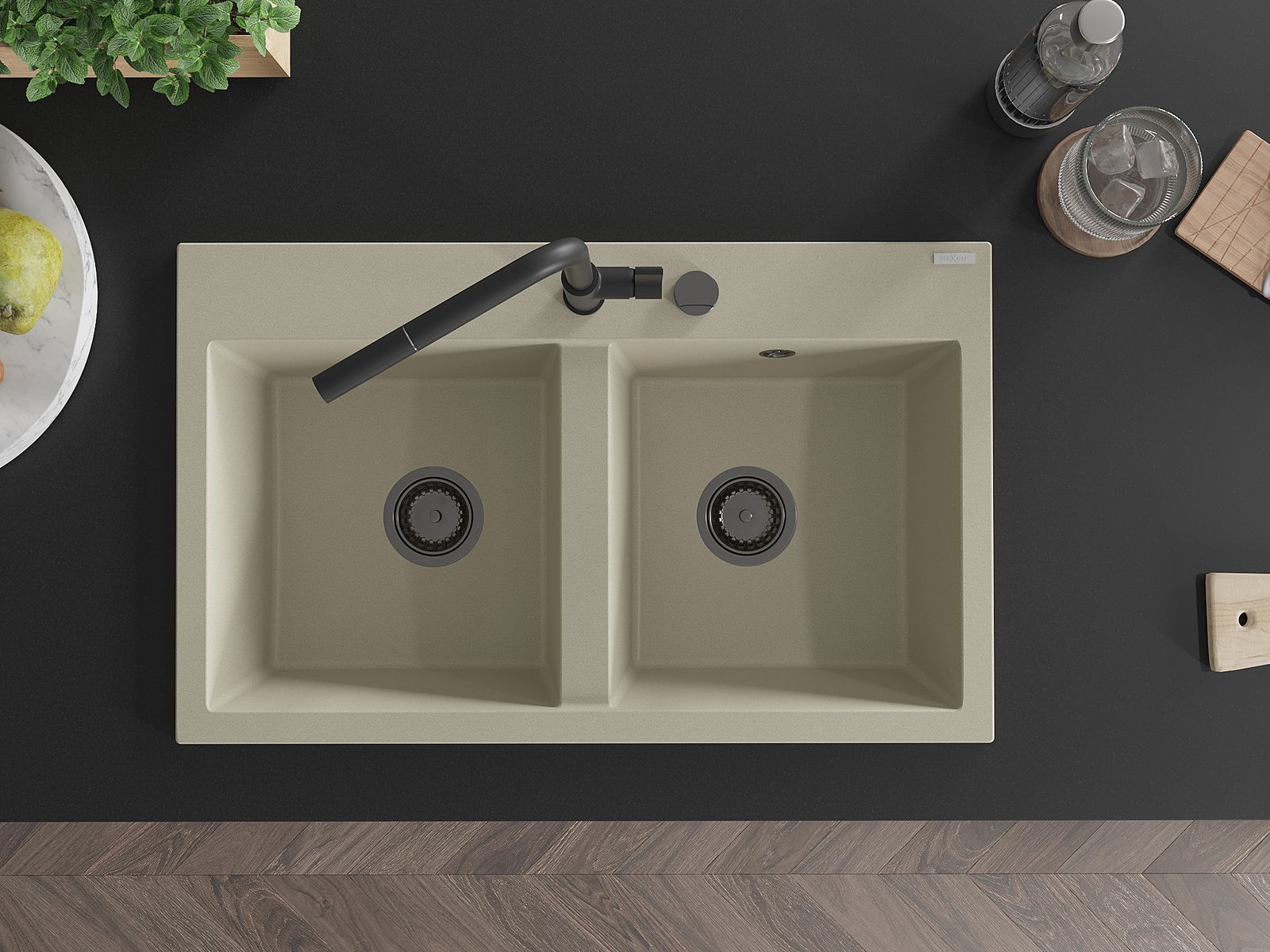 Povrch kuchynského drezu je odolný voči škvrnám a zafarbeniu, vďaka čomu sa ľahko udržiava a zachováva svoju farbu počas dlhého obdobia používania. Estetický a praktický doplnok pre každú kuchyňu.