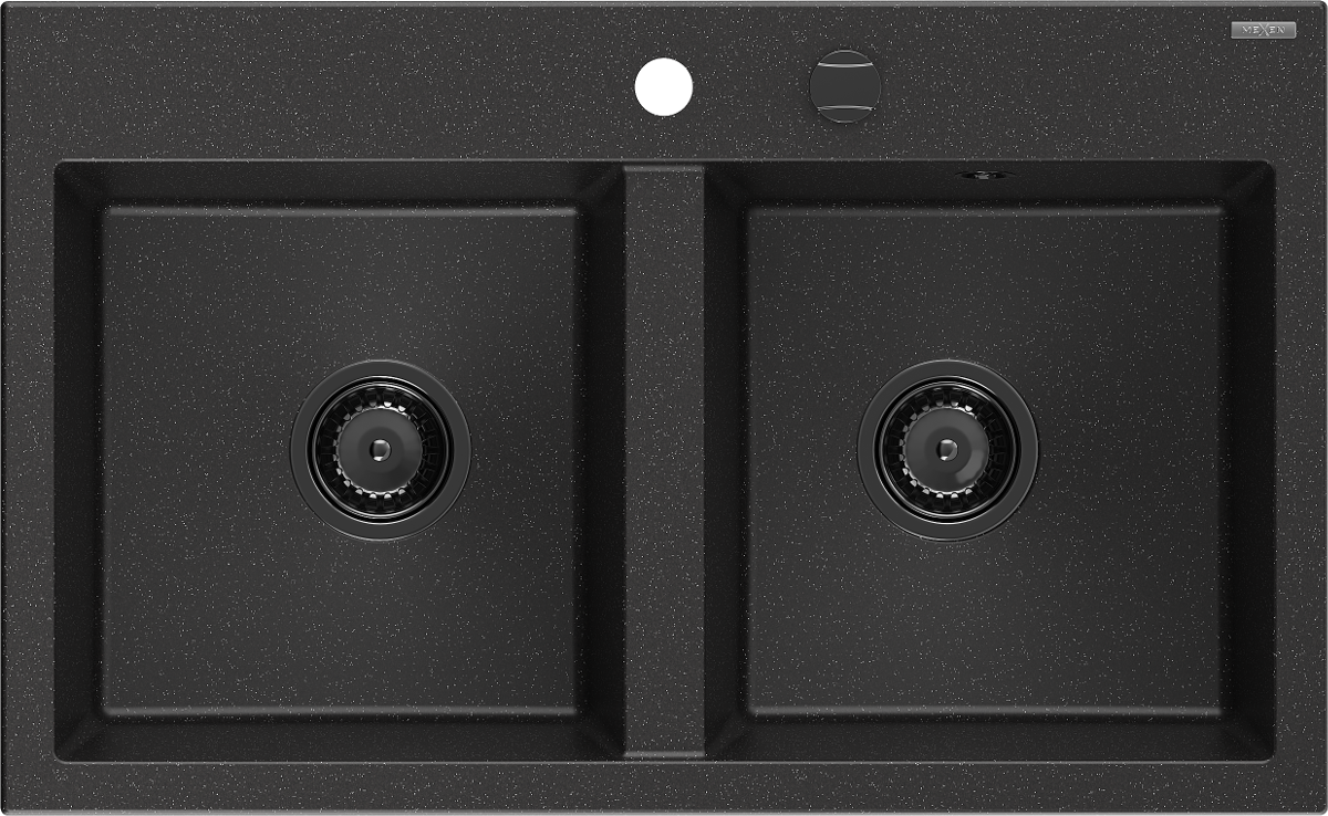 Mexen Hektor dvojkomorový žulový drez 800 x 480 mm, čierny/strieborný metalík, čierny sifón - 6521802000-73-B