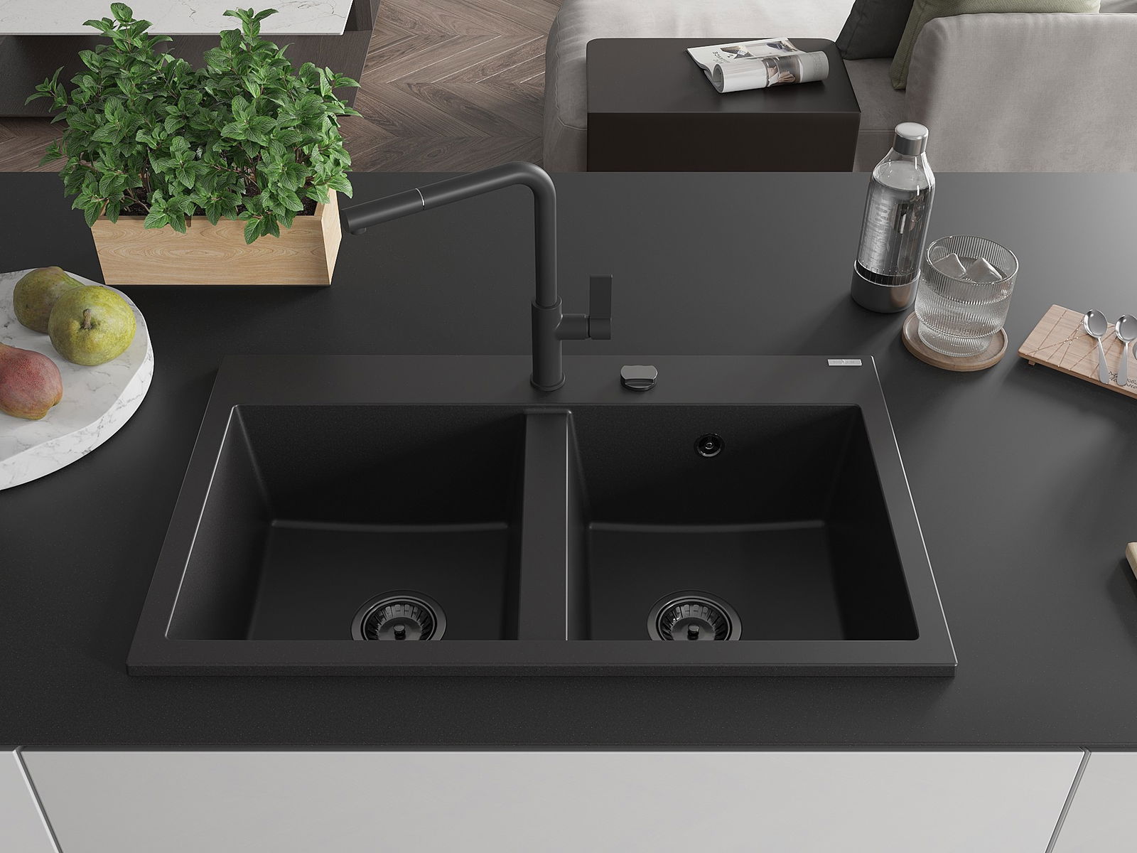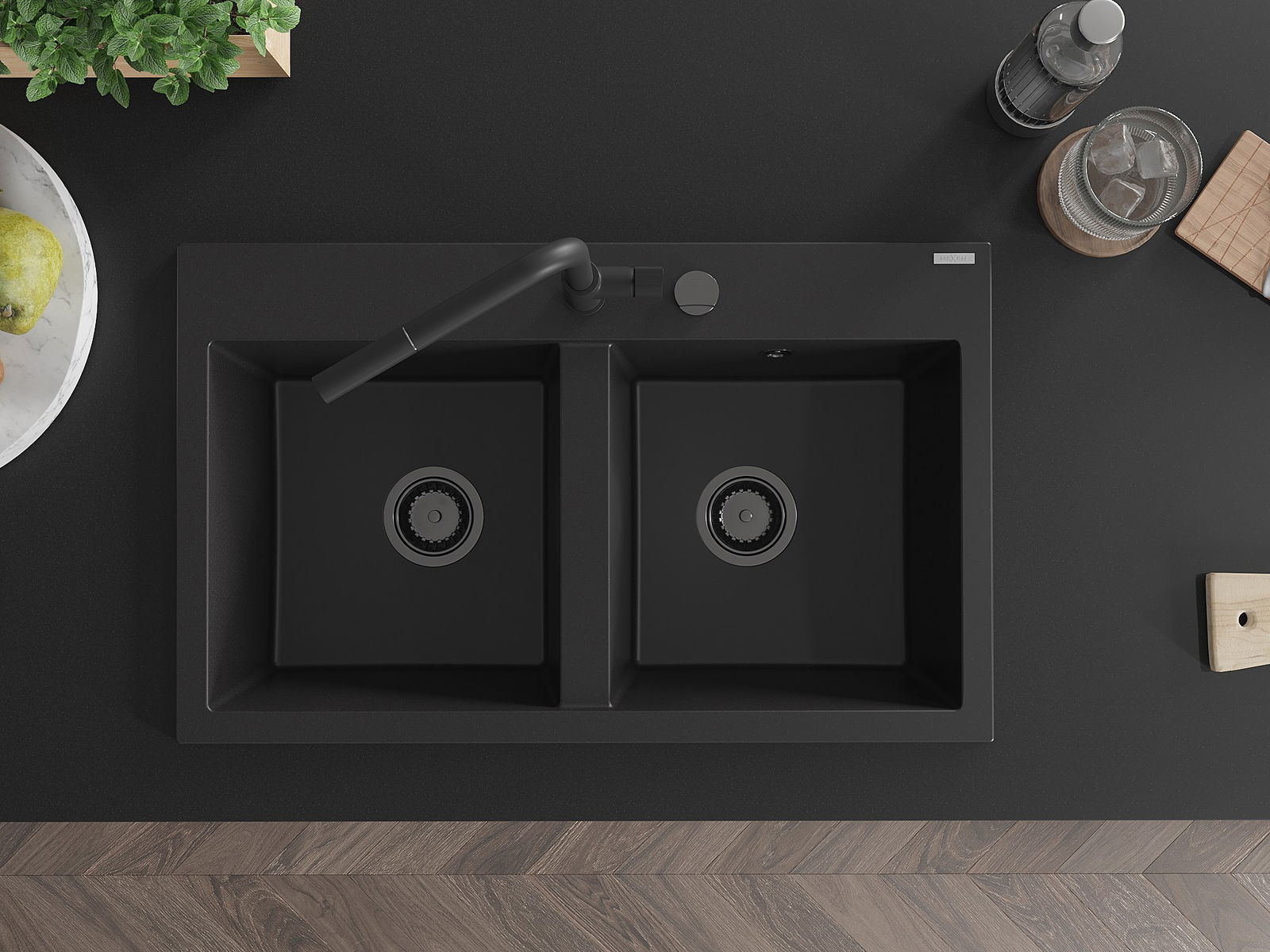 Drez má predfrézovaný otvor s priemerom 35 mm na samostatné prerazenie. Môže sa využiť napríklad na montáž dávkovača na tekutinu, ktorý eliminuje prítomnosť plastových fliaš v kuchyni a pridáva jej elegantné dokončenie.