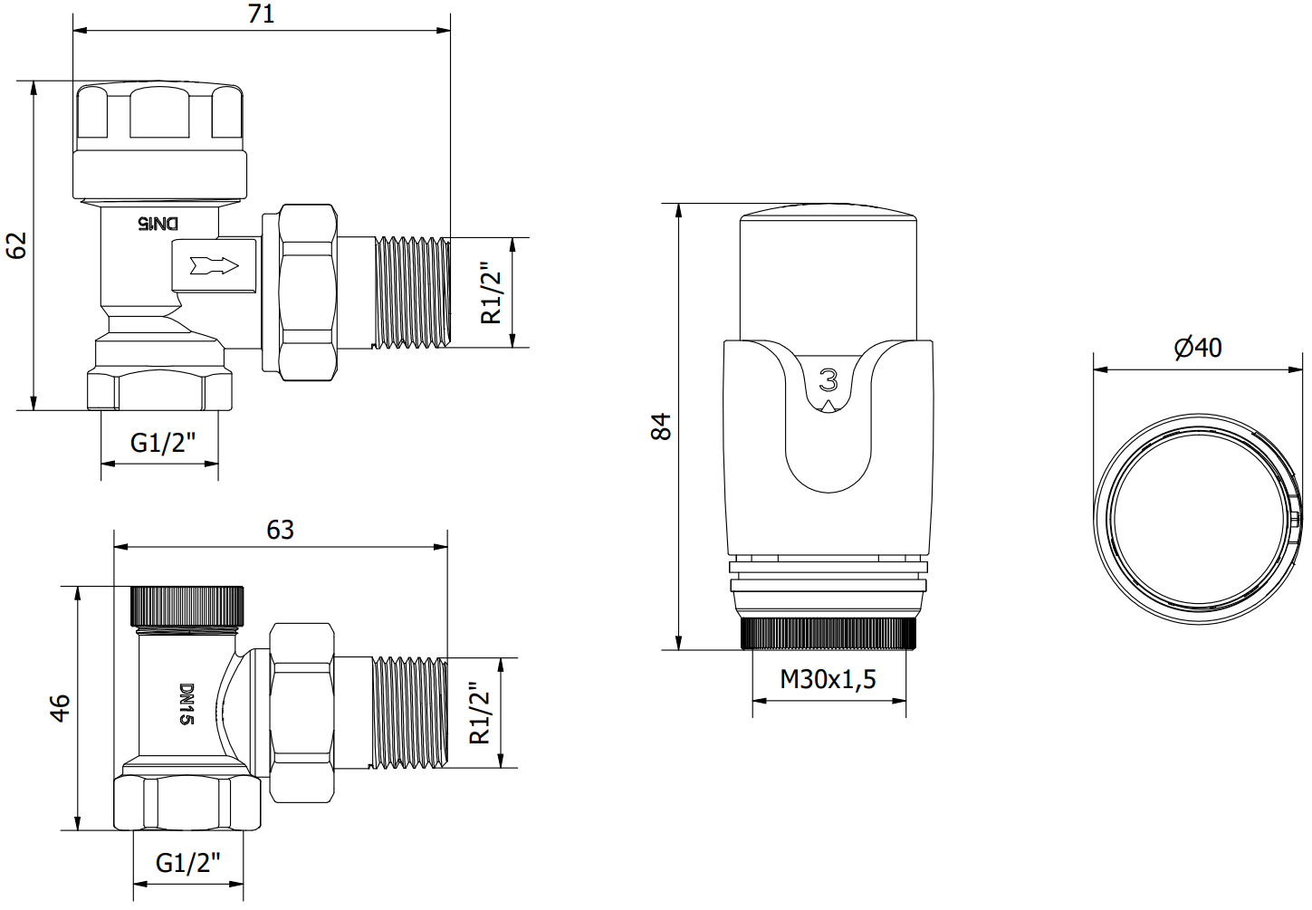 Závit hlavice: M30 x 1,5 mm