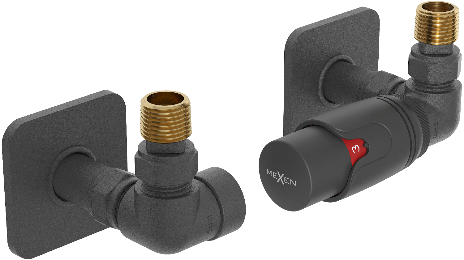 V komplet obsahuje napájací a uzatvárací radiátorový ventil