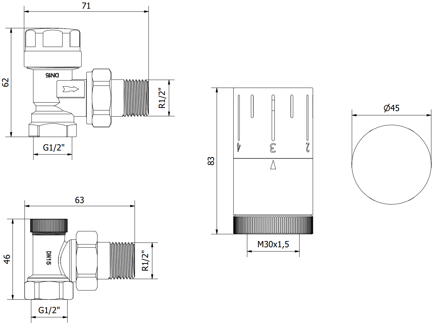 V balení sú ventil na napájanie radiátora a uzatvárací ventil