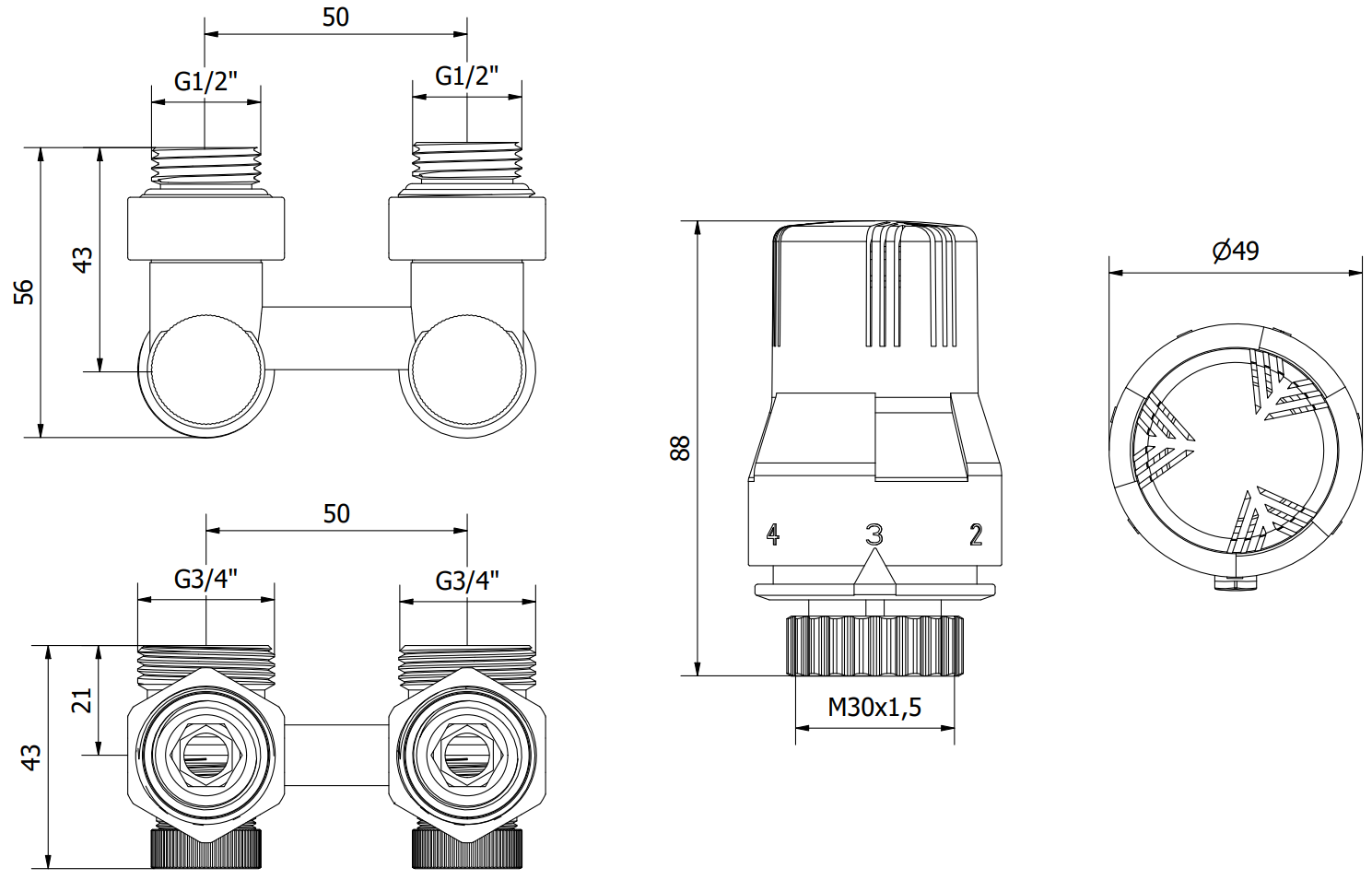 Priemer pripojenia ventilu: G 1/2" a G 3/4"