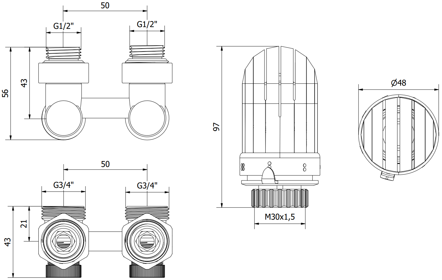 Priemer pripojenia ventilu: G 1/2" a G 3/4"