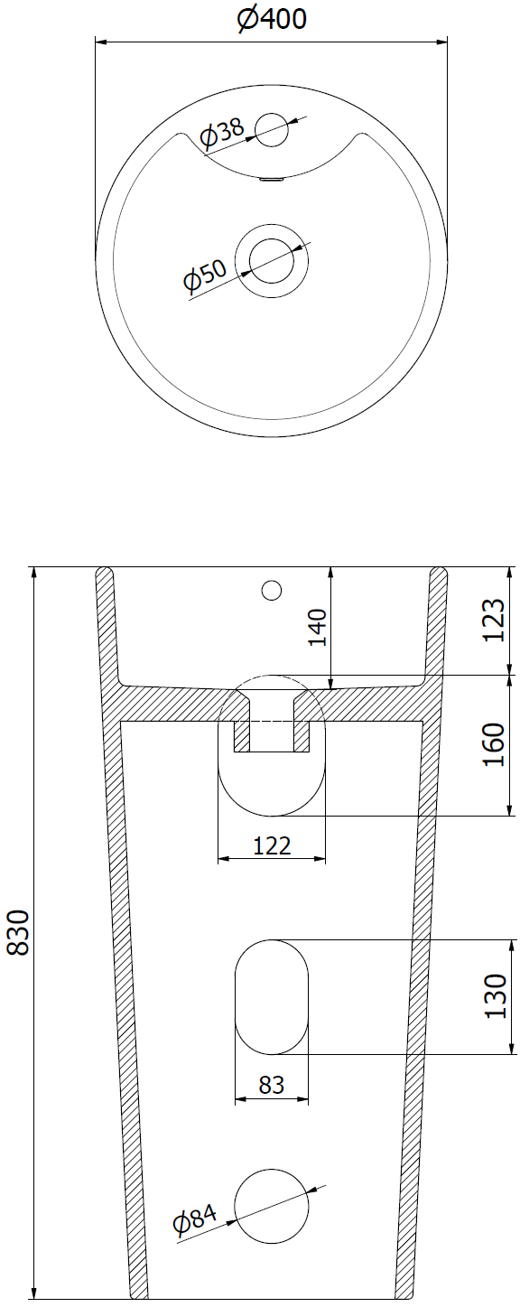 Umývadlo má otvor, do ktorého môžeme nainštalovať batériu. To umožňuje ušetriť cenný priestor v kúpeľni a zdôrazniť jej estetiky. Toto riešenie tiež umožňuje jednoduchšie udržiavanie čistoty okolo umývadla.
