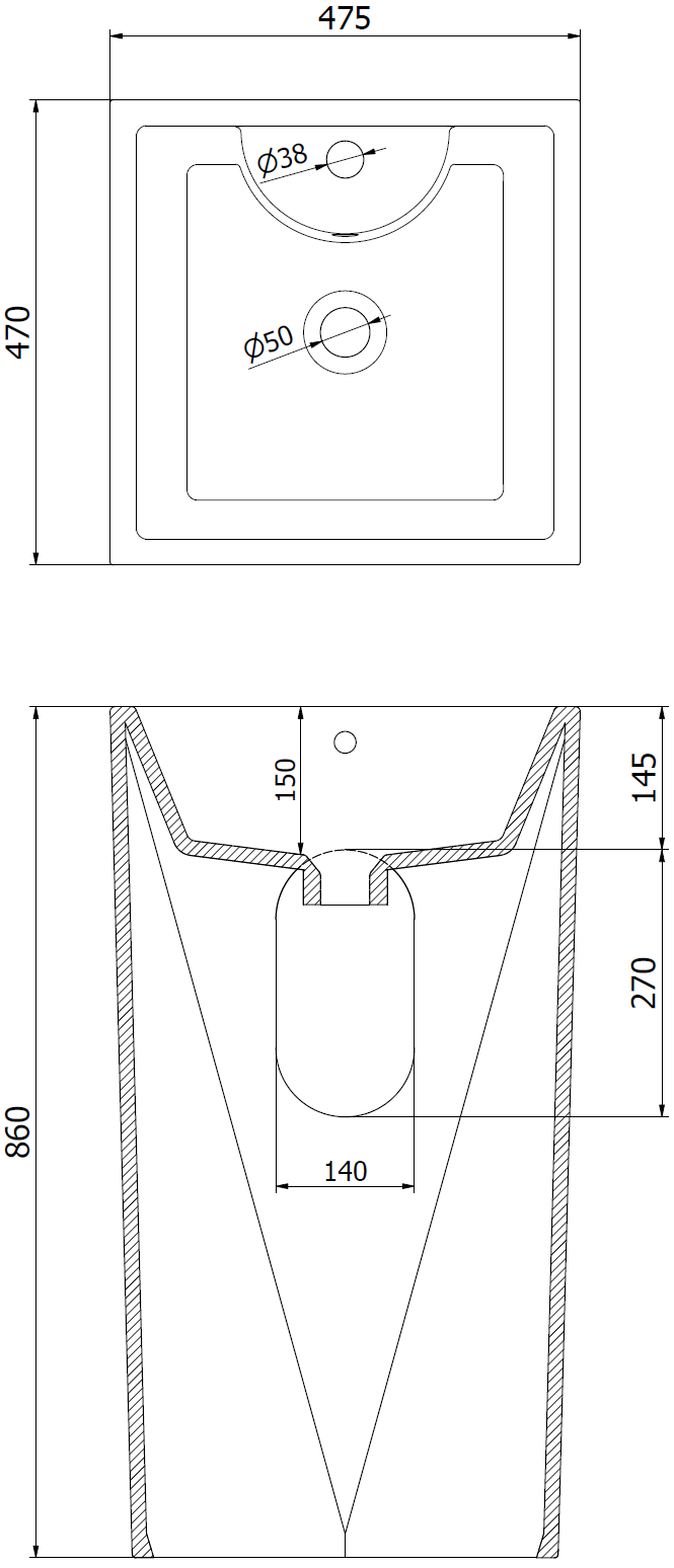 Umývadlo má otvor, do ktorého môžeme nainštalovať batériu. To umožňuje ušetriť cenný priestor v kúpeľni a zdôrazniť jej estetiky. Toto riešenie tiež umožňuje jednoduchšie udržiavanie čistoty okolo umývadla.
