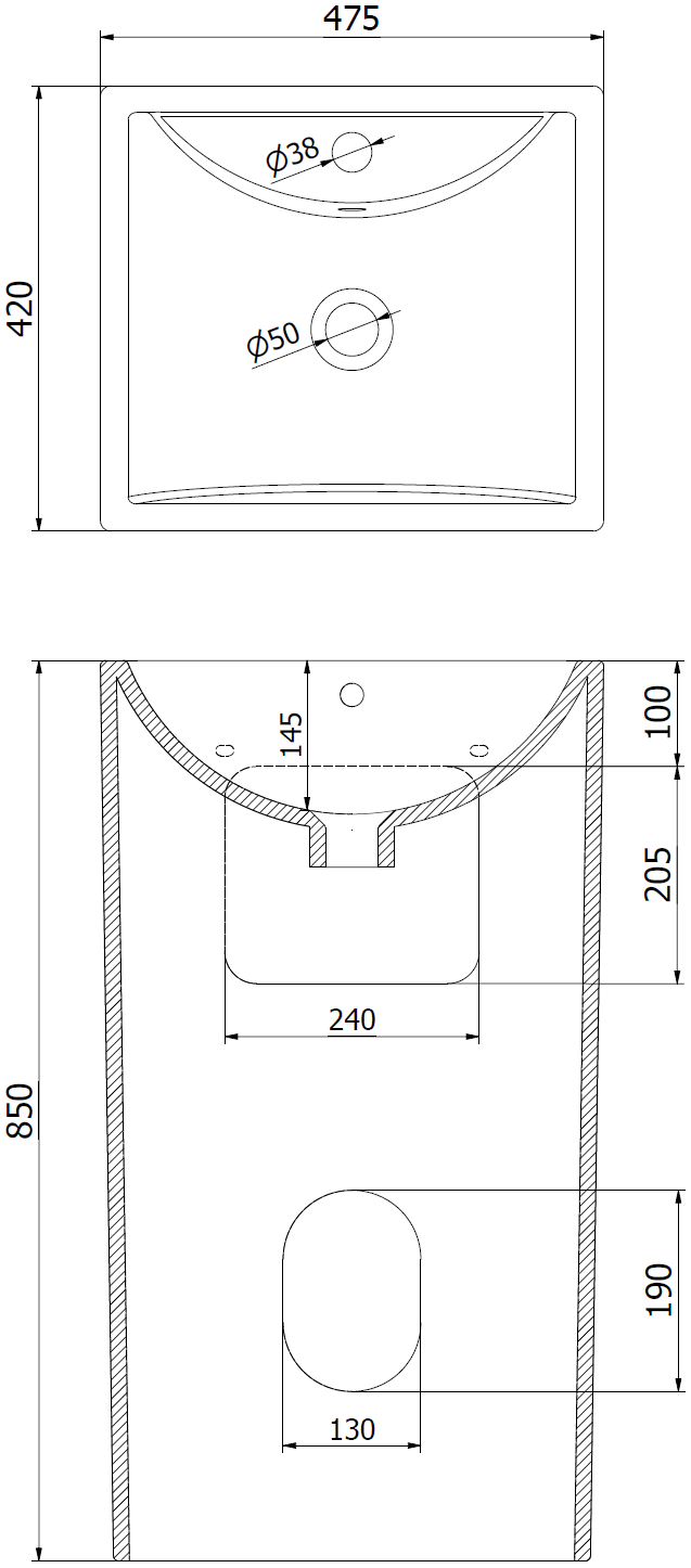 Umývadlo má otvor, do ktorého môžeme nainštalovať batériu. To umožňuje ušetriť cenný priestor v kúpeľni a zdôrazniť jej estetiky. Toto riešenie tiež umožňuje jednoduchšie udržiavanie čistoty okolo umývadla.