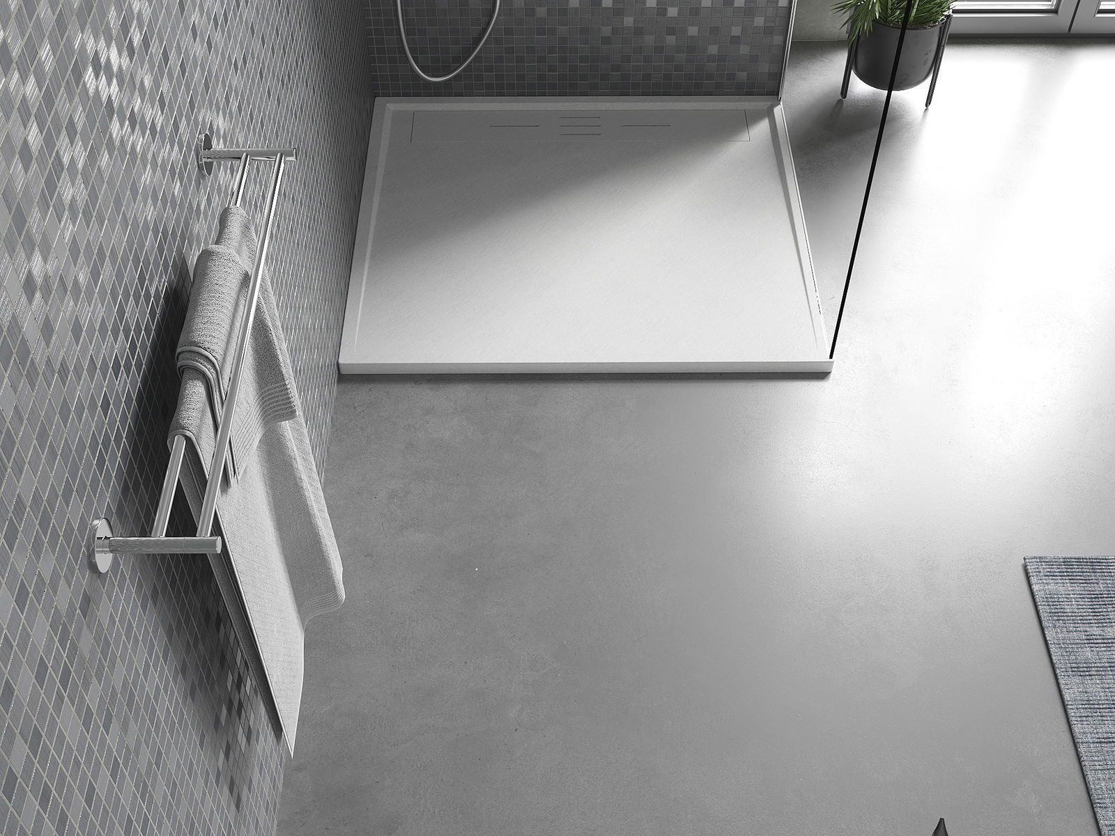 Povrch sprchovej vaničky svojou štruktúrou pripomína kameň. Predstavuje jedinečné spojenie prirodzeného vzhľadu s modernou úpravou interiéru. Dodáva charakter, zdôrazňuje estetiku a eleganciu výbavy kúpeľne a ohromuje svojou formou.
