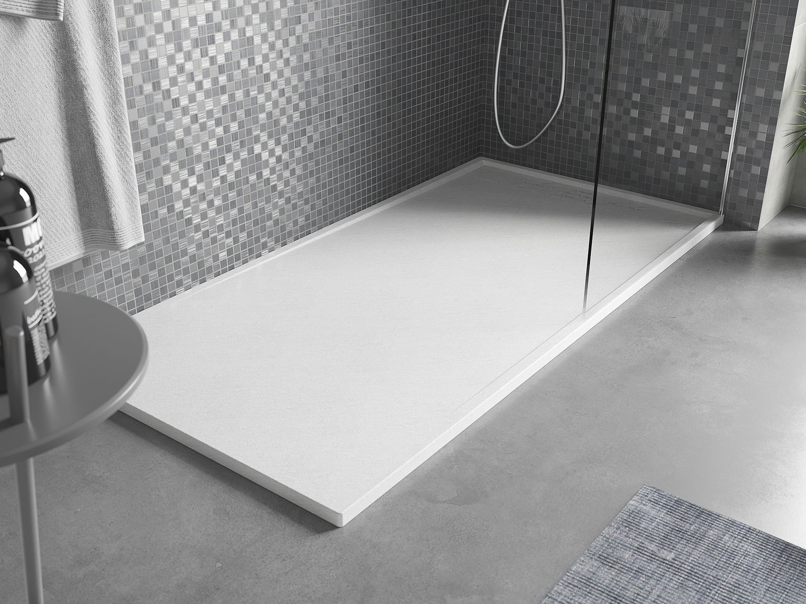 Povrch sprchovej vaničky svojou štruktúrou pripomína kameň. Predstavuje jedinečné spojenie prirodzeného vzhľadu s modernou úpravou interiéru. Dodáva charakter, zdôrazňuje estetiku a eleganciu výbavy kúpeľne a ohromuje svojou formou.