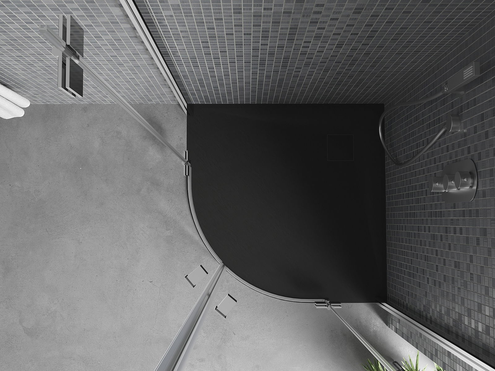 Mexen Bert polkruhový sprchový kút 90 x 90 cm je ideálnym riešením pre moderné kúpeľne. Vyrobený z odolného a pružného materiálu SMC, zaisťuje maximálnu stabilitu a odolnosť voči poškodeniam. Jeho ultratenká konštrukcia s výškou len 2,6 cm zaisťuje výnimočnú estetiku a ľahkú montáž. Vďaka možnosti prispôsobenia a atraktívnej čiernej povrchovej úprave sa dokonale hodí do každého interiéru. Súčasťou balenia je sifón čistiteľný zhora a odtok s priemerom 90 mm.