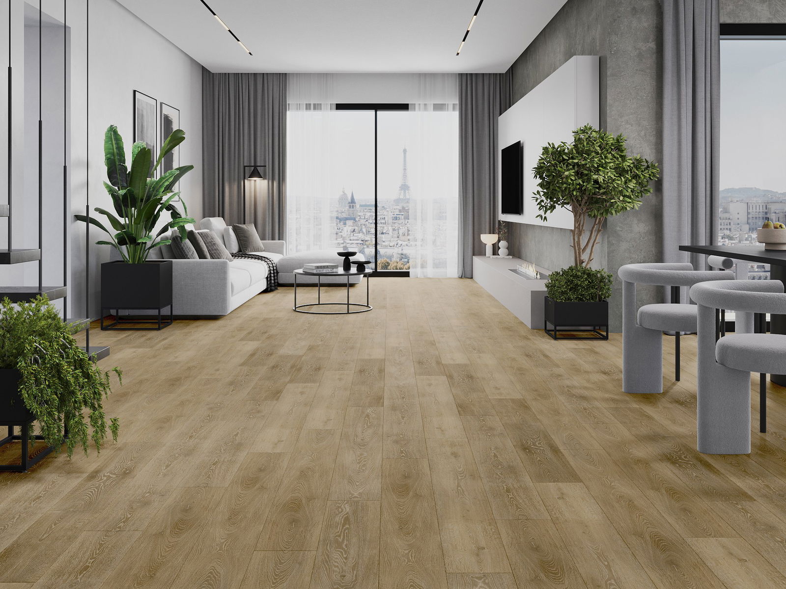 Panely majú 4-strannú škáru - každá strana bola frézovaná takým spôsobom, aby po položení vzniklo spojenie v tvare písmena V. Takýto dizajn dodáva podlahe výraznejšiu štruktúru, čo jej dáva hĺbku a estetický charakter. Tento efekt je obzvlášť cenený v moderných aranžmánoch, kde detaily zdôrazňujú jedinečný vzhľad interiéru.