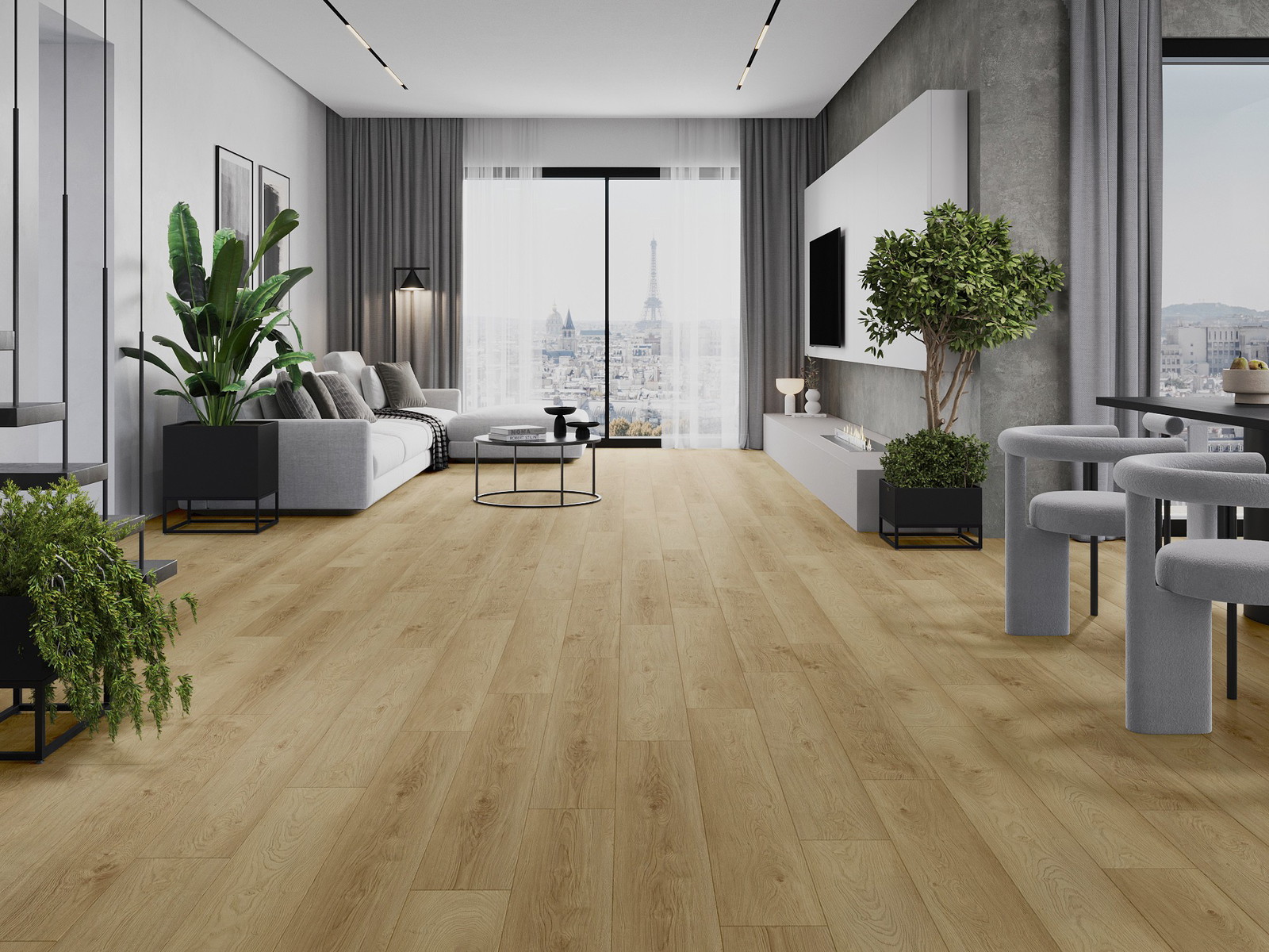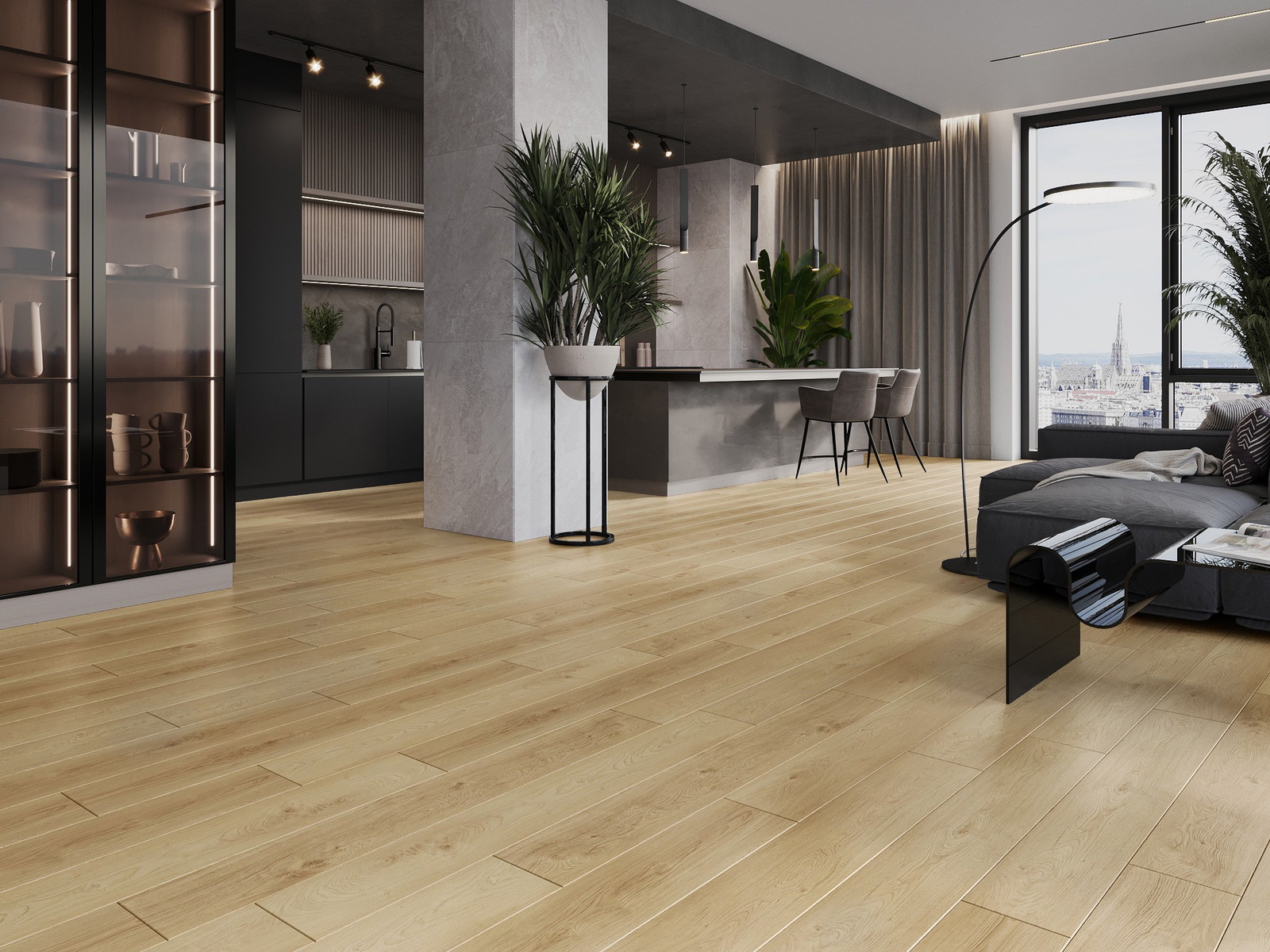 Panely majú 4-strannú škáru - každá strana bola vyfrézovaná tak, aby po položení vzniklo spojenie v tvare písmena V. Takýto dizajn spôsobuje, že podlaha získava výraznejšiu štruktúru, čo jej dodáva hĺbku a estetický charakter. Tento efekt je obzvlášť cenený v moderných aranžmánoch, kde detaily zdôrazňujú výnimočný vzhľad interiéru.