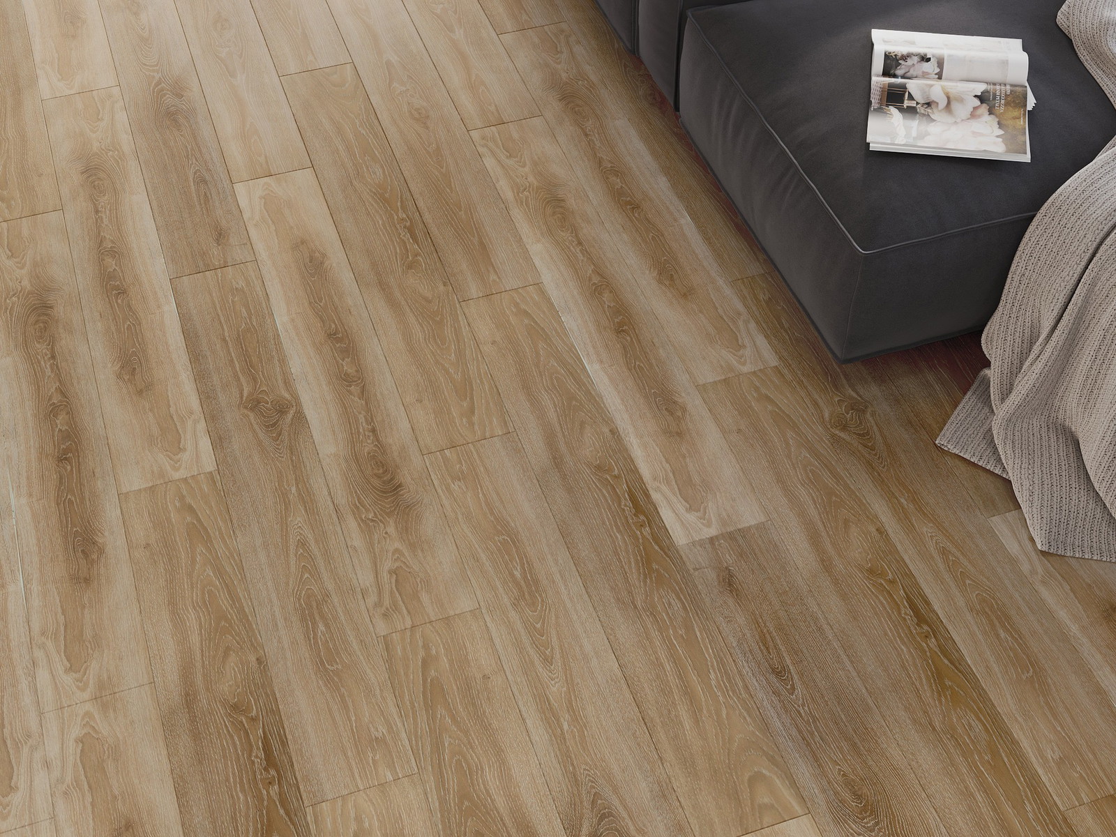 Panely majú 4-strannú škáru - každá strana bola vyfrézovaná tak, aby po položení vzniklo spojenie v tvare písmena V. Takýto dizajn spôsobuje, že podlaha získava výraznejšiu štruktúru, čo jej dodáva hĺbku a estetický charakter. Tento efekt je obzvlášť cenený v moderných aranžmánoch, kde detaily zdôrazňujú výnimočný vzhľad interiéru.