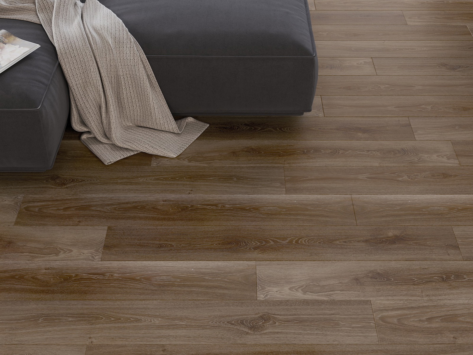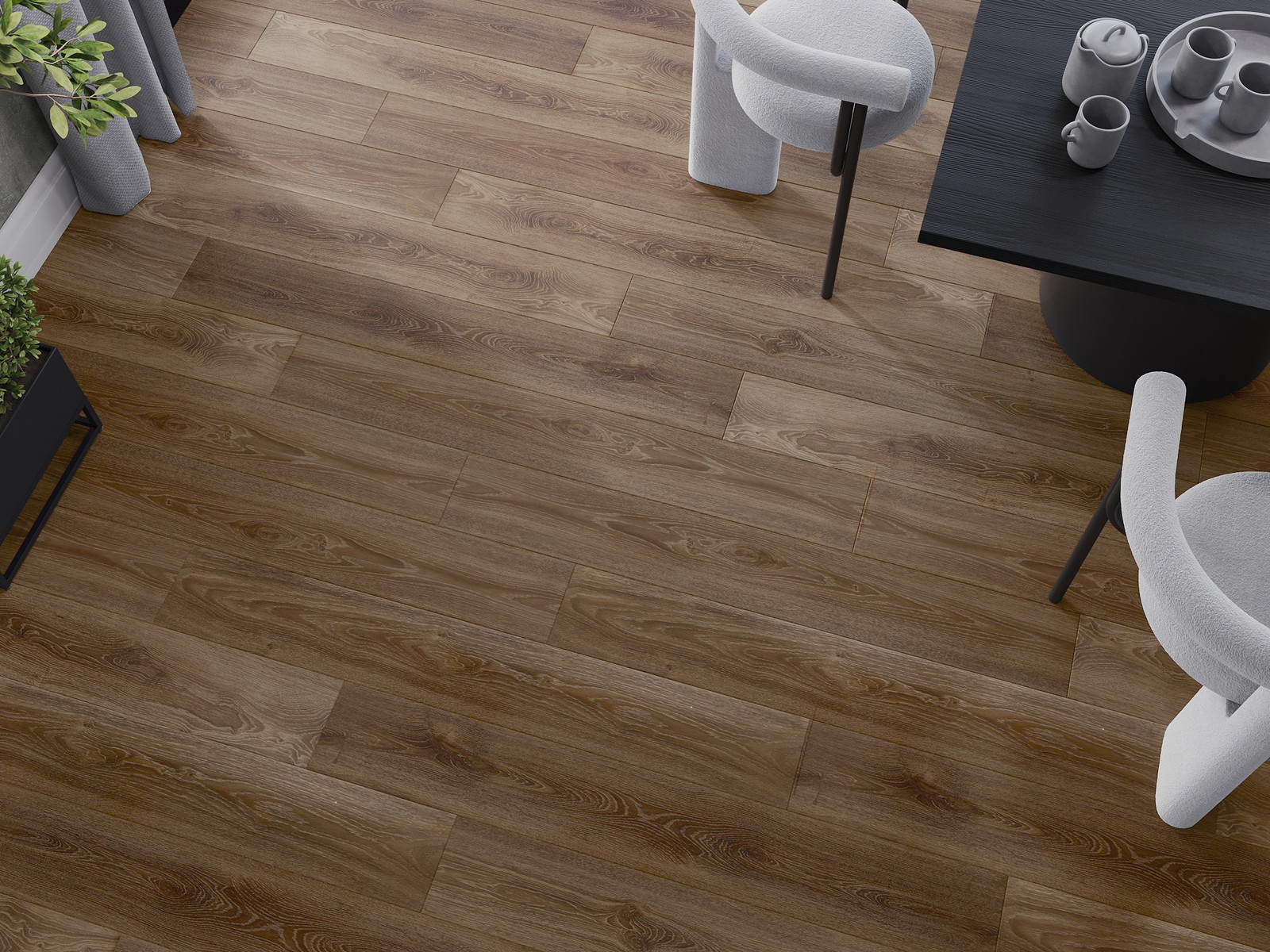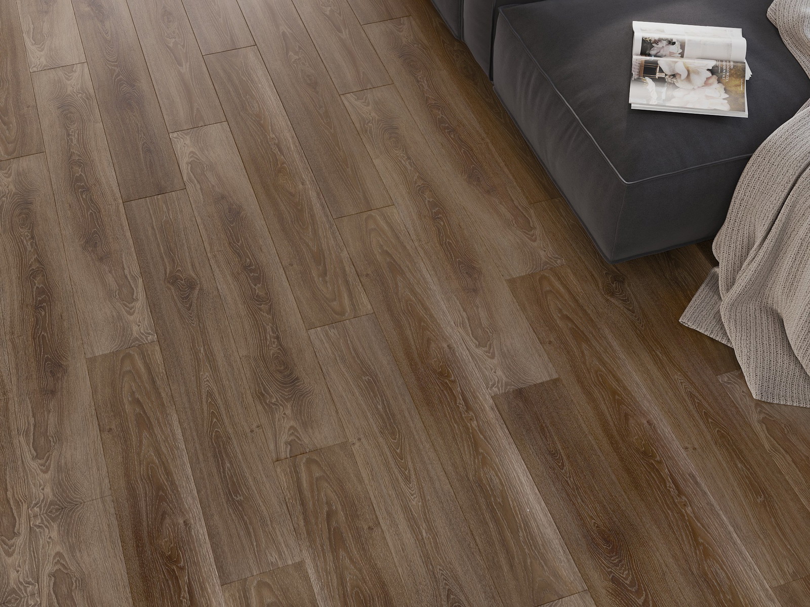 Panely majú 4-strannú škáru - každá strana bola vyfrézovaná tak, aby po položení vzniklo spojenie v tvare písmena V. Takýto dizajn spôsobuje, že podlaha získava výraznejšiu štruktúru, čo jej dodáva hĺbku a estetický charakter. Tento efekt je obzvlášť cenený v moderných aranžmánoch, kde detaily zdôrazňujú výnimočný vzhľad interiéru.