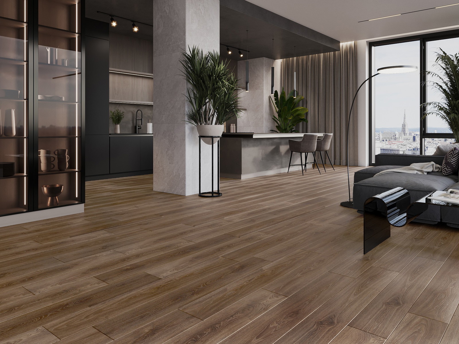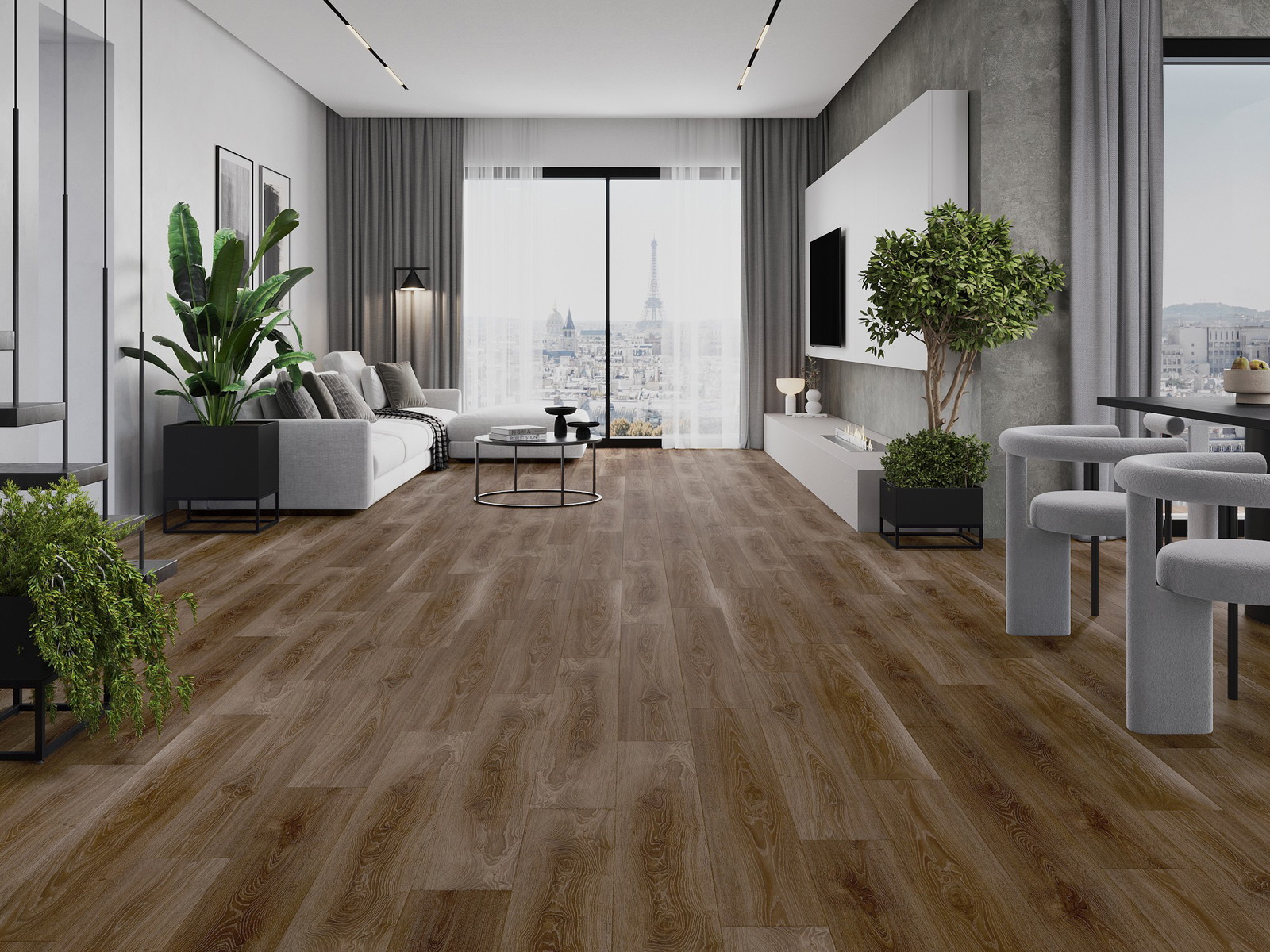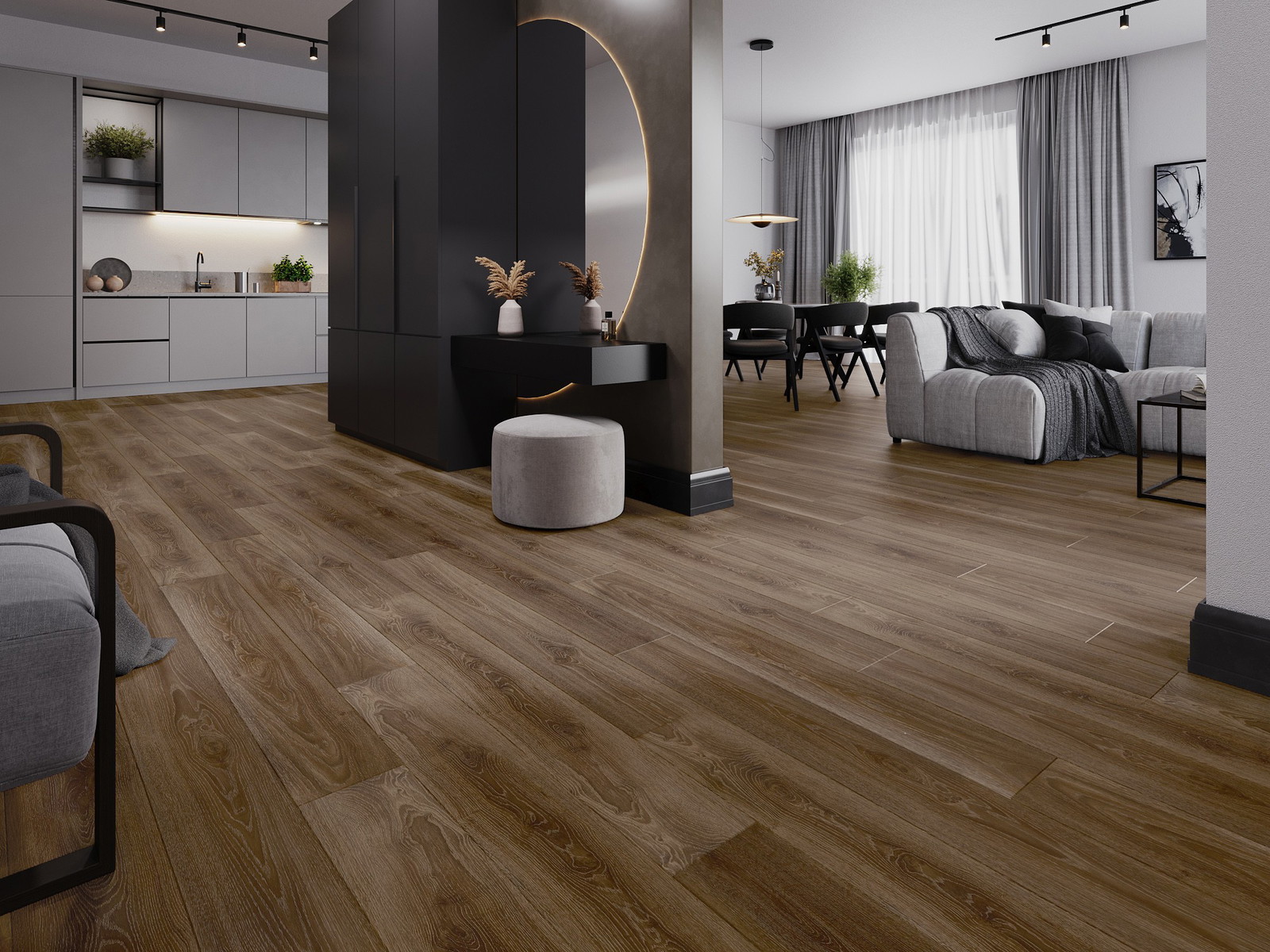Panely majú 4-strannú škáru - každá strana bola vyfrézovaná tak, aby po položení vzniklo spojenie v tvare písmena V. Takýto dizajn spôsobuje, že podlaha získava výraznejšiu štruktúru, čo jej dodáva hĺbku a estetický charakter. Tento efekt je obzvlášť cenený v moderných aranžmánoch, kde detaily zdôrazňujú výnimočný vzhľad interiéru.