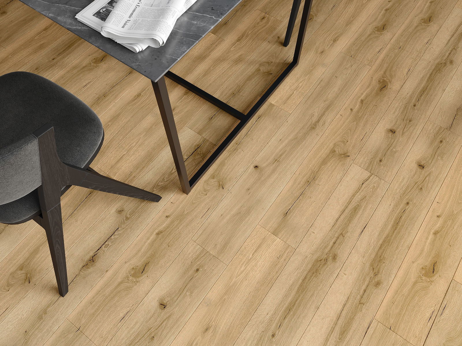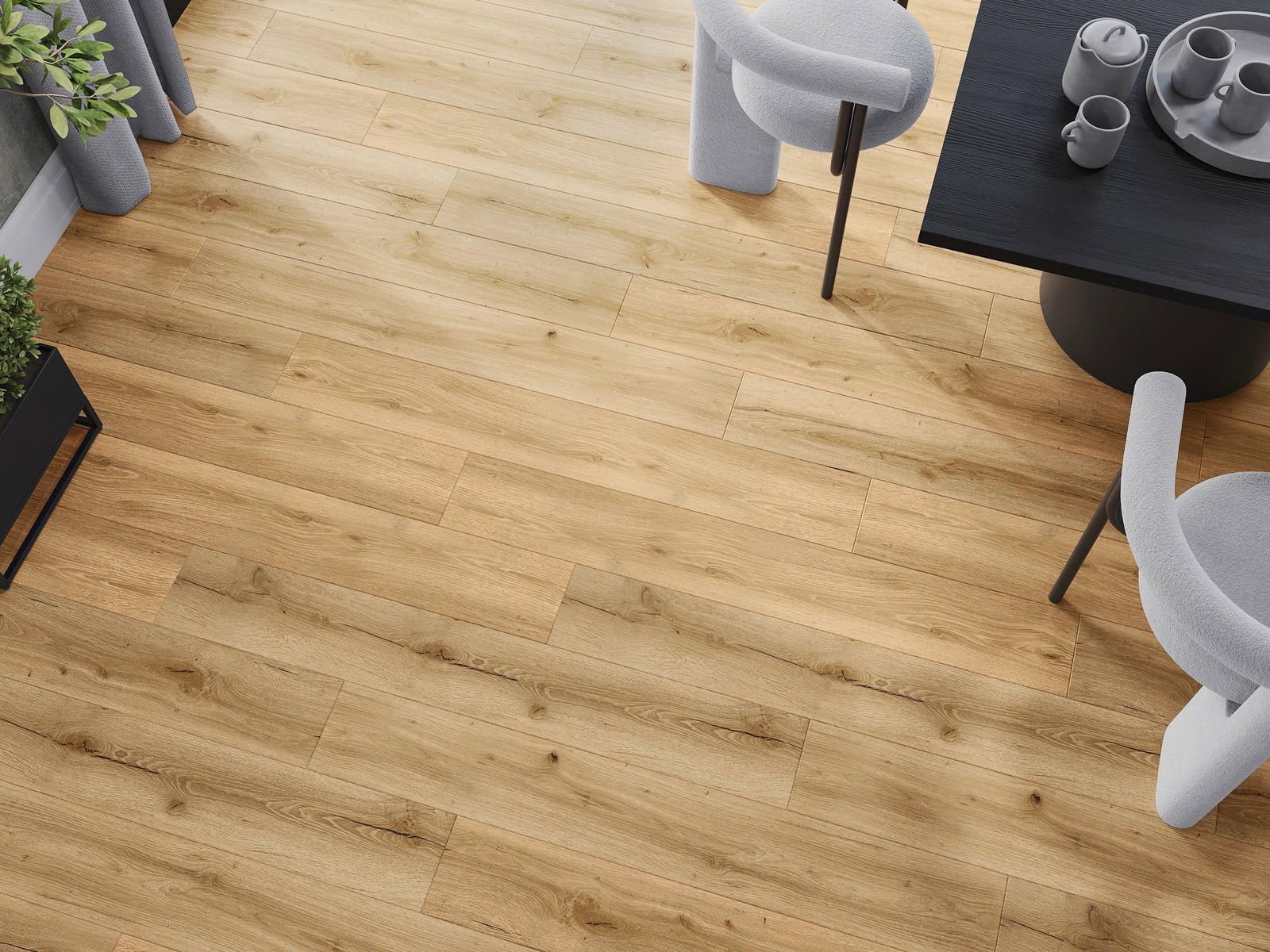 Panely majú 4-strannú škáru - každá strana bola vyfrézovaná takým spôsobom, že po položení vznikne spojenie v tvare písmena V. Tento dizajn spôsobuje, že podlaha nadobudne výraznejšiu štruktúru, čo jej dodáva hĺbku a estetický charakter. Tento efekt je obzvlášť cenený v moderných aranžmánoch, kde detaily zdôrazňujú výnimočný vzhľad interiéru.