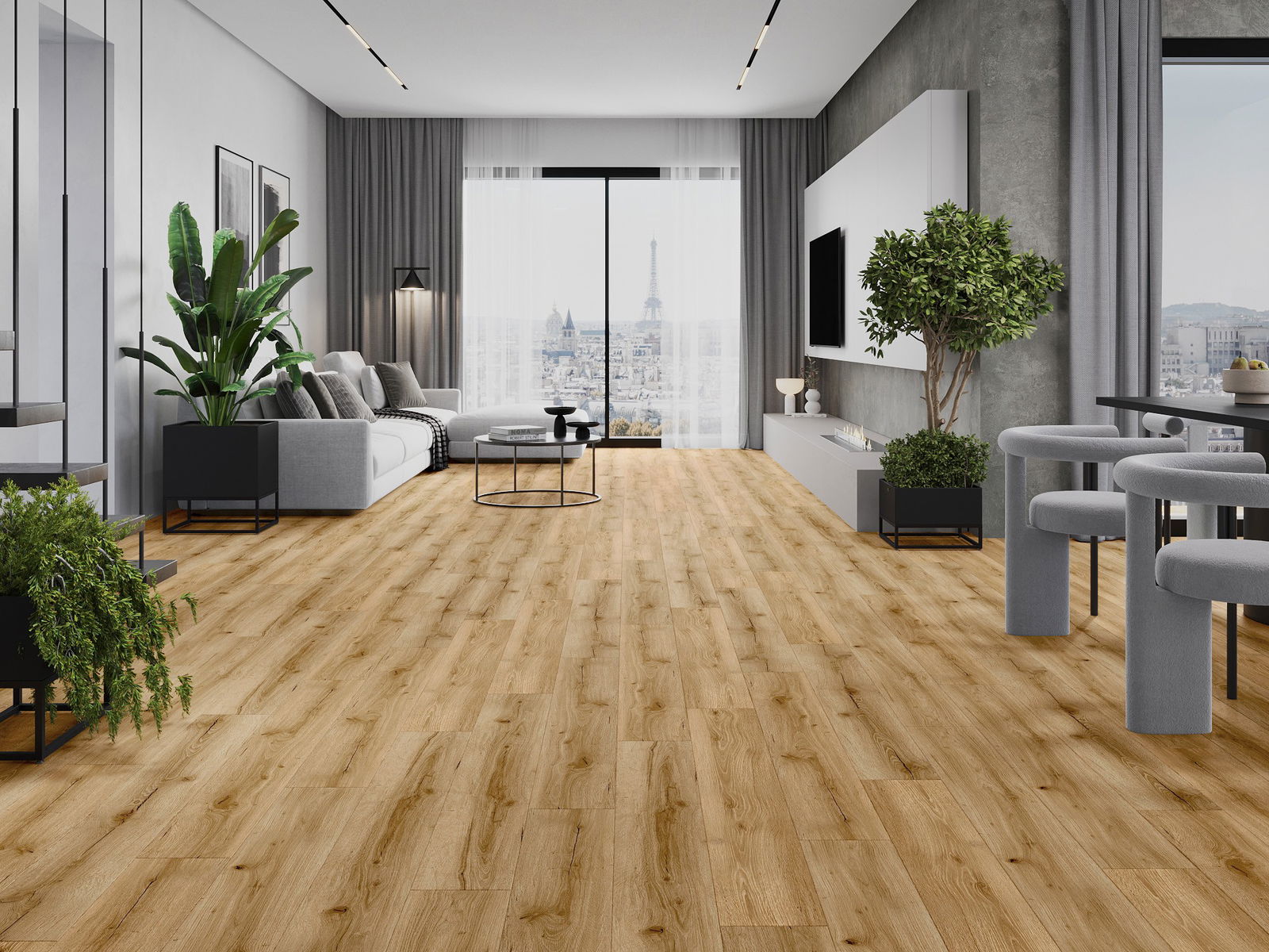Vinylové panely 1240 x 182 mm ponúkajú moderné podlahové riešenia integrované s podkladom IXPE o hrúbke 1,5 mm, čo zaisťuje vynikajúcu akustickú izoláciu a komfort. Vďaka hrúbke 6,5 mm a štvorsprašnej V-drážke sú estetické a ľahké na montáž. Ponúkajú plnú vodeodolnosť a vysokú odolnosť voči škrabancom, čo ich robí ideálnym výberom pre intenzívne používané priestory. Produkt je kompatibilný s nízkoteplotným podlahovým kúrením.