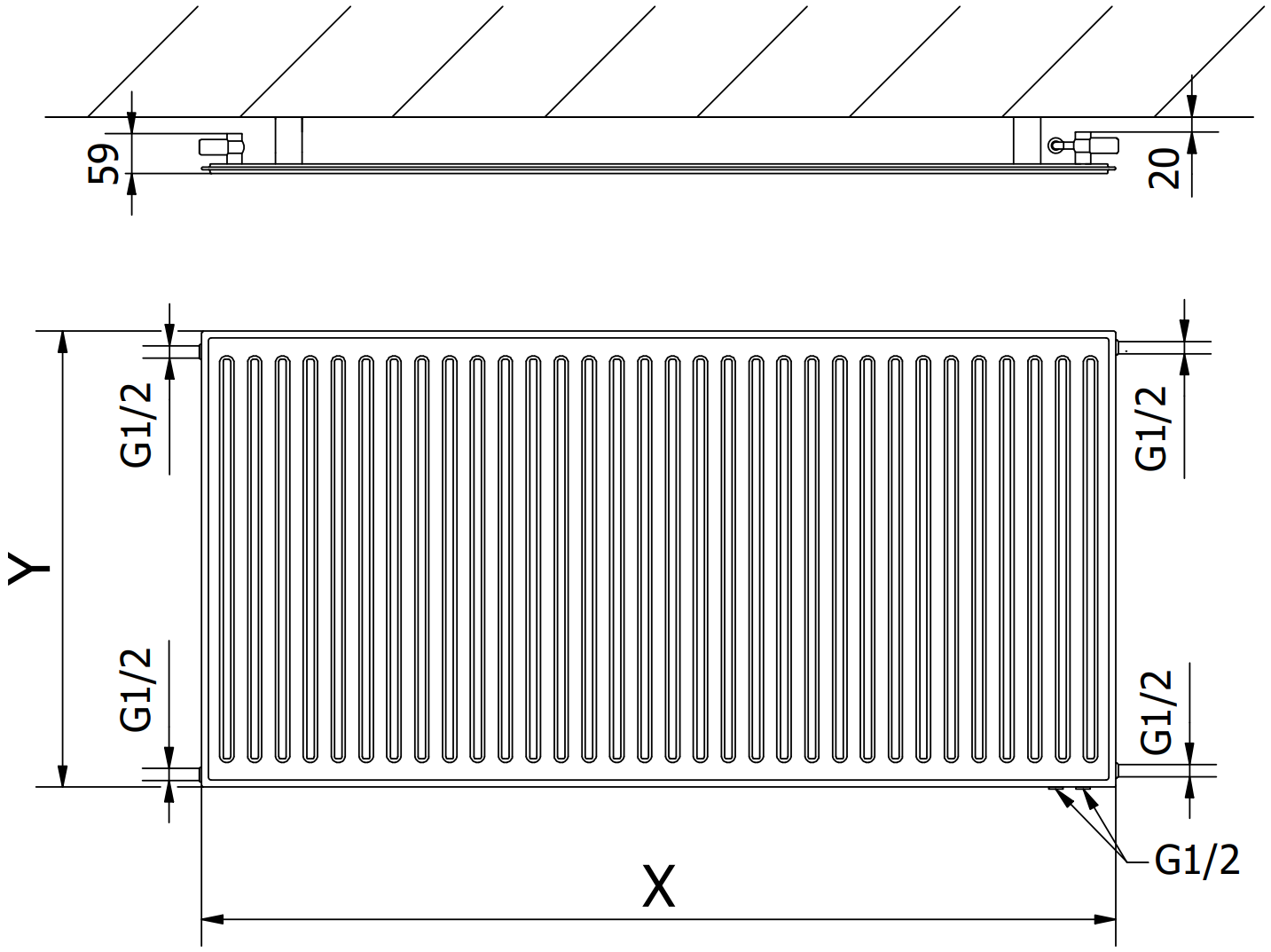 Obrázky zobrazujú radiátor s rozmermi 600 x 1200 mm.