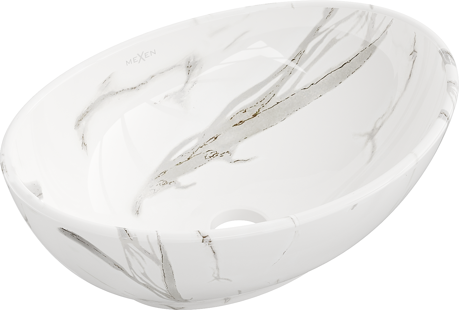 Mexen Elza je elegantné umývadlo na dosku s rozmermi 40,5 x 33 cm, vyrobené z vysokokvalitnej sanitárnej keramiky vo farbe bieleho kameňa. Jeho oválny tvar a lesklý povrch dodávajú kúpeľni moderný vzhľad. Vďaka hĺbke 12,5 cm poskytuje produkt pohodlné použitie a absencia otvorov na batérie a prepad ho ideálne začleňuje do minimalistických aranžmánov. Navyše, umývadlo je chránené ochranným povlakom, čo uľahčuje jeho údržbu.