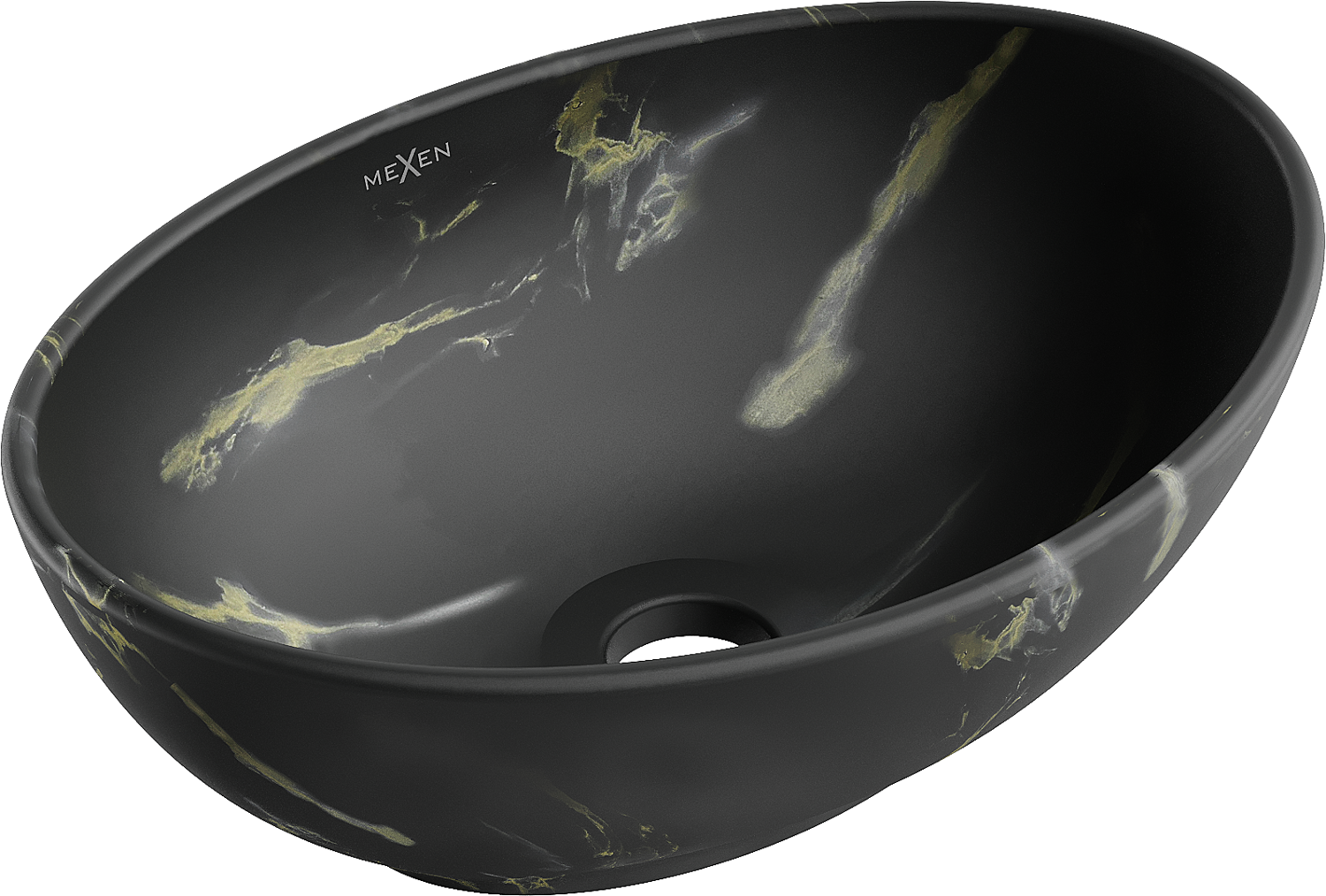 Mexen Elza je elegantné umývadlo na doske s rozmermi 40,5 x 33 cm v štýlovej čiernej farbe kameňa. Vyrobené zo sanitárnej keramiky, vyznačuje sa trvanlivosťou a moderným dizajnom. Toto umývadlo má oválny tvar a matný povrch, čo mu dodáva jemný, ale sofistikovaný vzhľad. Absencia otvorov na batériu a prepad robí z neho ideálnu voľbu pre minimalistické aranžmány. Vďaka ochrannému povlaku je produkt ľahko udržiavateľný a zachováva si svoj lesk po dlhú dobu.