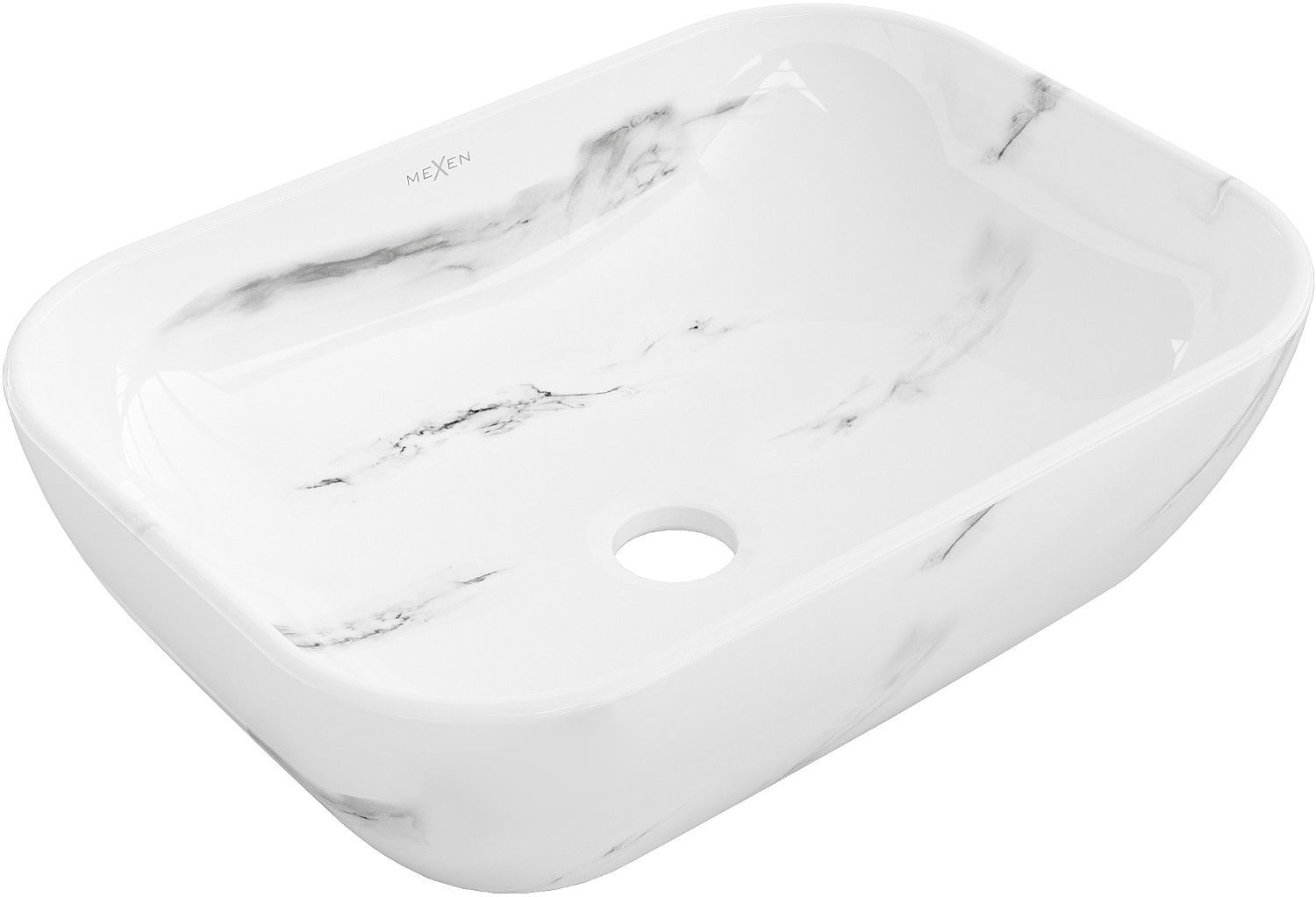 Mexen Rita je elegantné náľitý umývadlo s rozmermi 45,5x32,5 cm, vyrobené z vysoko kvalitnej sanitárnej keramiky v farbe bieleho kameňa. Ovlálny tvar a lesklý povrch zabezpečujú moderný vzhľad každej kúpeľni. Vďaka absencii otvoru na batérie a prelivu sa umývadlo dokonale hodí do minimalistického štýlu. Ochranný povlak zvyšuje jeho trvanlivosť a ľahkosť čistenia, čo z neho robí praktickú voľbu pre ľudí, ktorí si cenia estetiku aj funkčnosť.