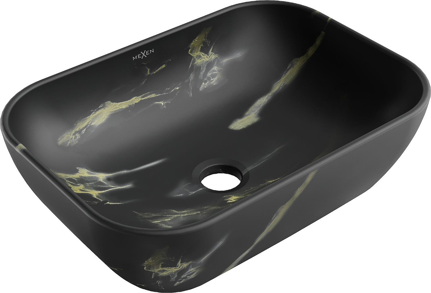 Mexen Rita je elegantné stolové umývadlo s rozmermi 45,5 x 32,5 cm, vyrobené z matnej sanitárnej keramiky vo farbe čierneho kameňa. Vďaka svojmu oválu a chýbajúcemu otvoru na batériu sa dokonale hodí do moderných interiérov, pridávajúc im štýl a triedu. Hĺbka 11,5 cm zaručuje pohodlné používanie a povrch s ochrannou vrstvou je ľahko čistiteľný. Je to skvelá voľba pre ľudí, ktorí si cenia estetiku a funkčnosť v kúpeľni.