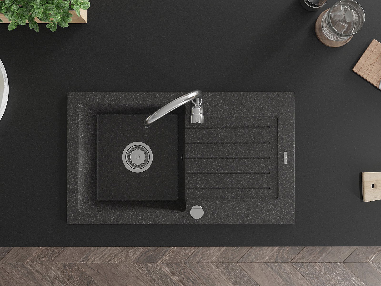 Povrch umývadla je odolný voči škvrnám a sfarbeniu, vďaka čomu sa ľahko čistí a zachováva si svoju farbu po dlhú dobu. Estetický a prakticky dopĺňajúci každú kuchyňu.