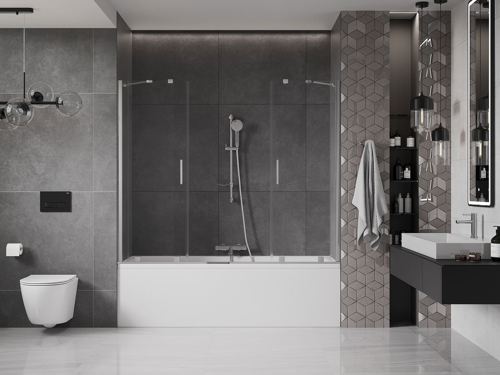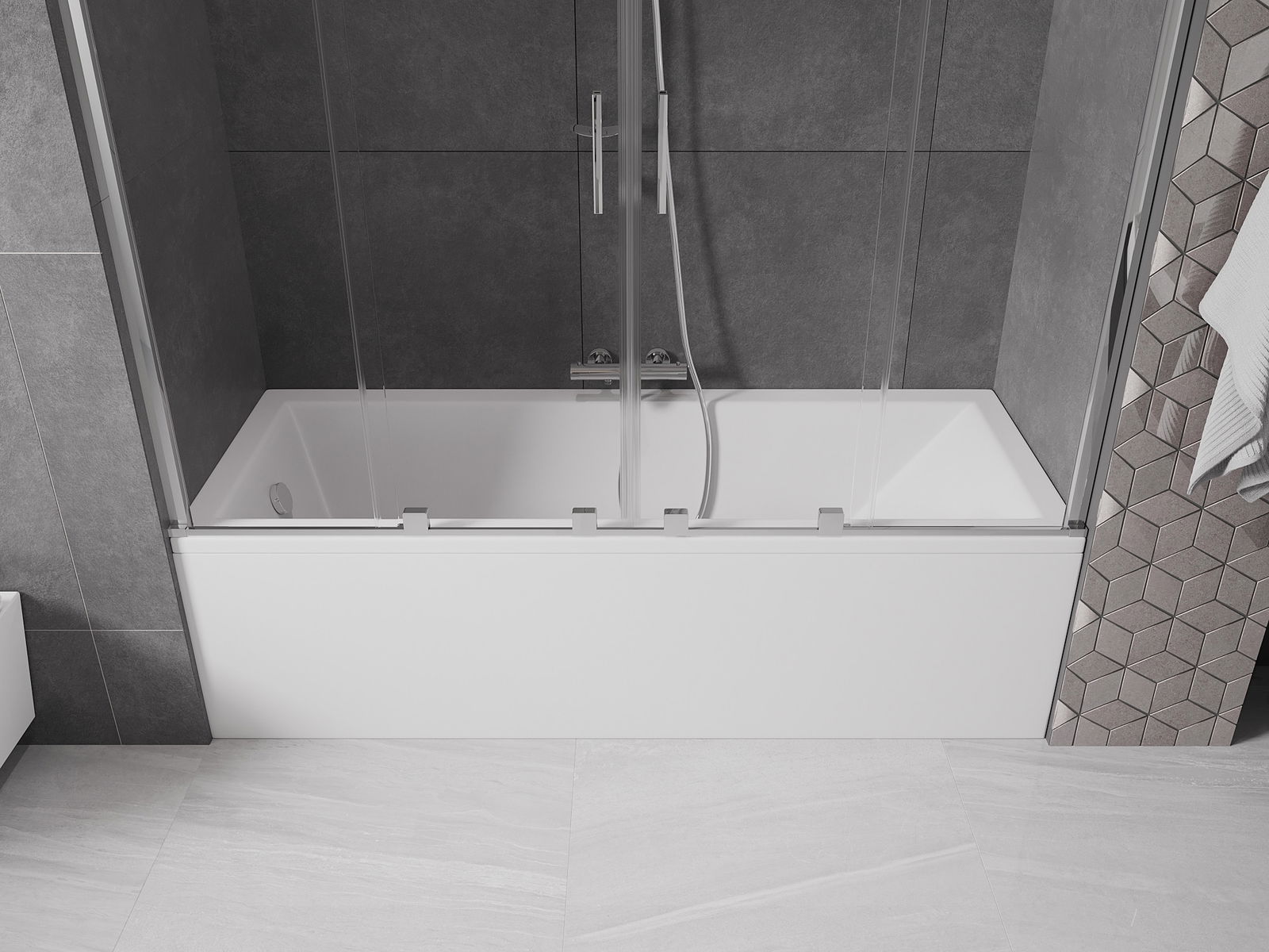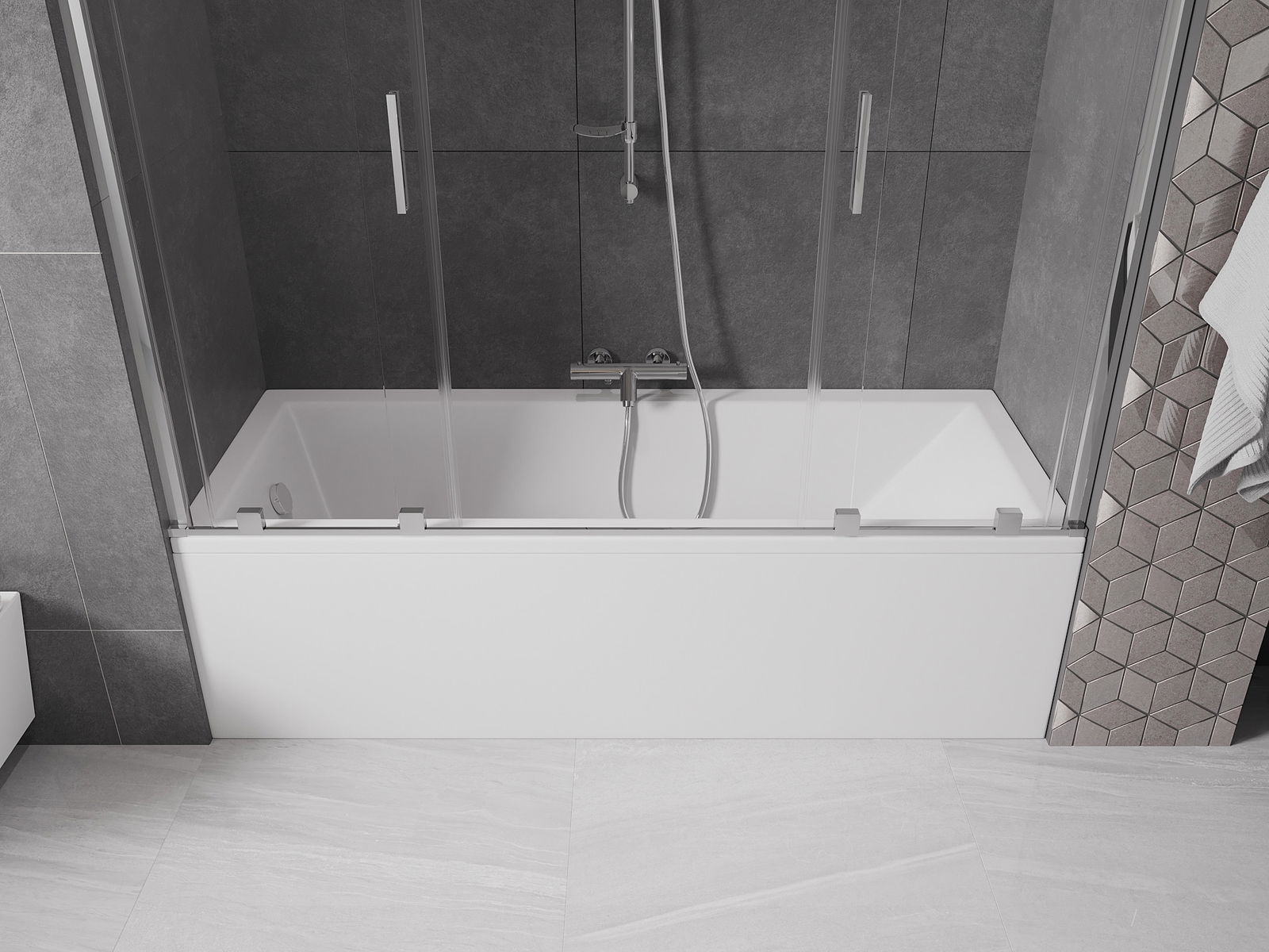 Vďaka použitiu univerzálneho montážneho systému môže byť priečka namontovaná na pravej alebo ľavej strane, podľa potreby. Týmto spôsobom môžete ľahko navrhnúť sprchu prispôsobenú priestoru kúpeľne.