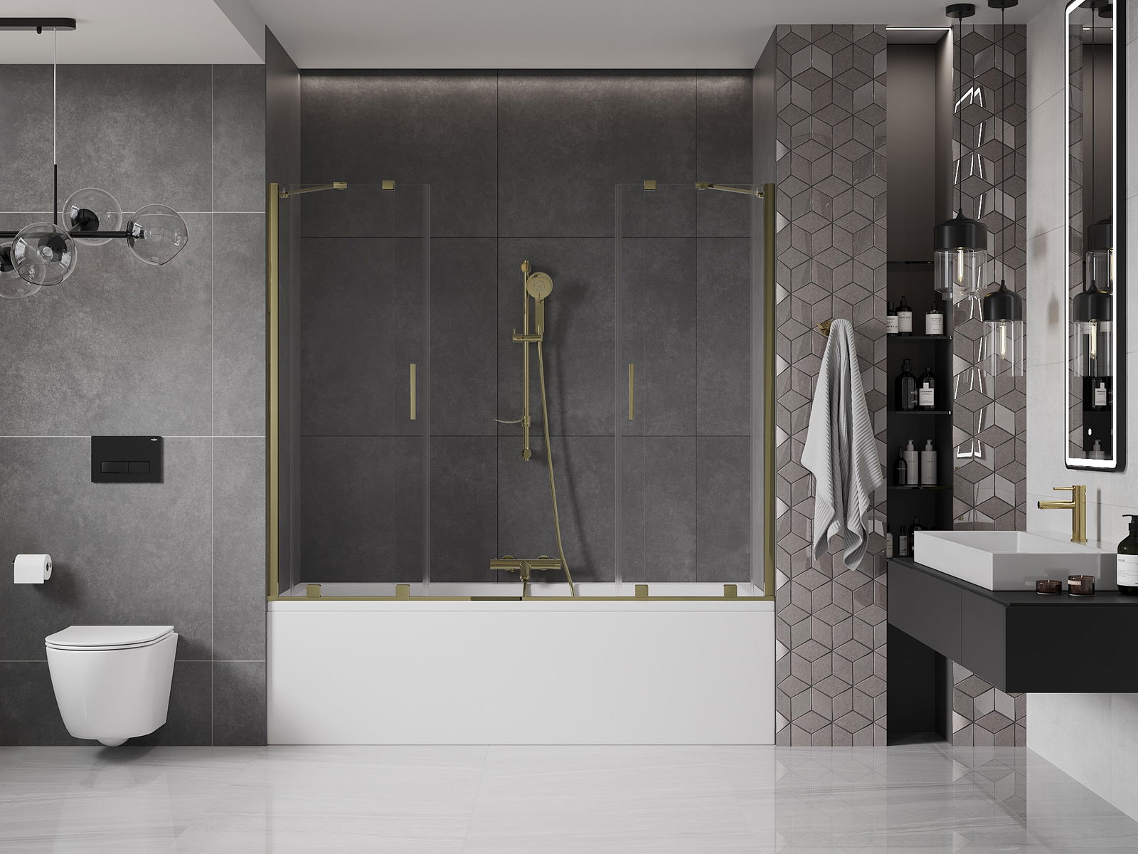 Mexen Velar Duo vaňová zástena 2-krídlová posuvná 190 x 150 cm, priehľadná, zlatá - 896-190-000-02-50