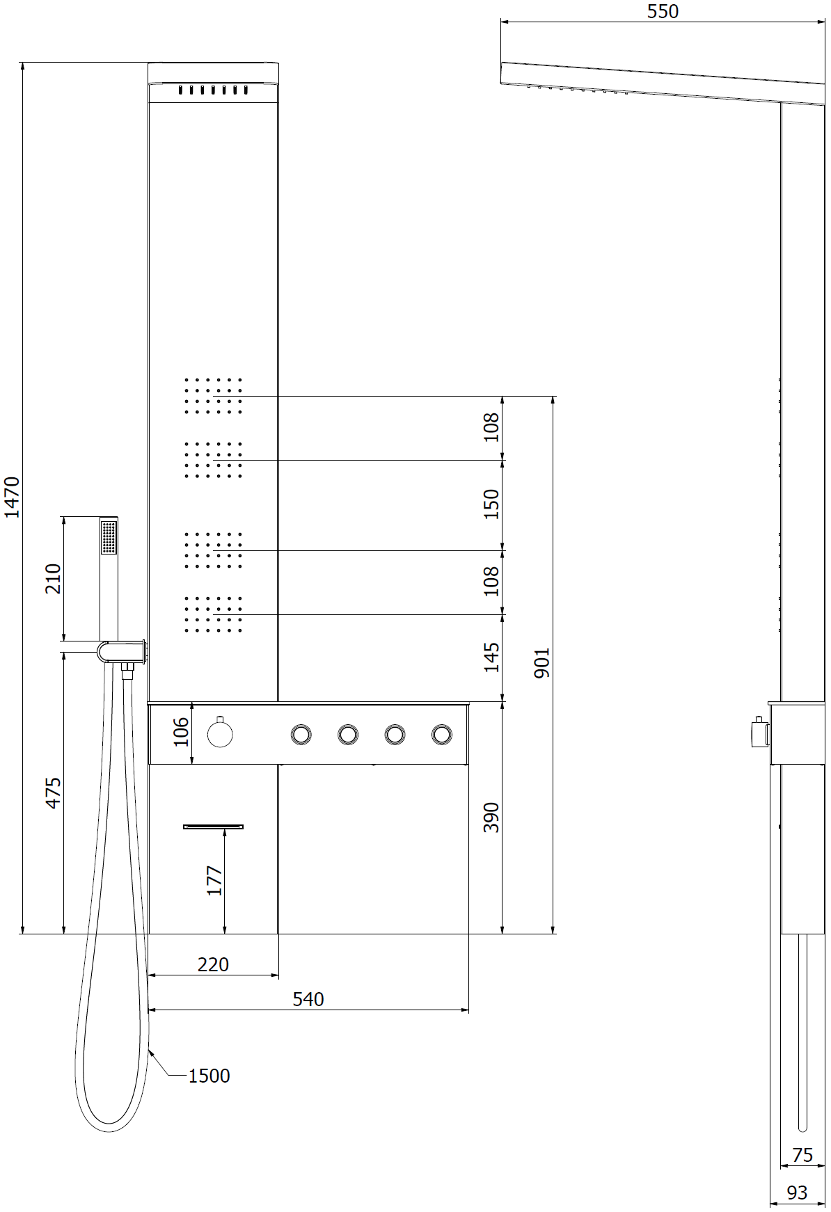 Ručná sprcha má jeden typ prúdu – dážď. Táto funkcia imituje prirodzený dážď, ktorý rovnomerne steká po tele. Poskytuje jemný a relaxačný pocit počas kúpeľa, ktorý sa stáva skutočným momentom uvoľnenia.
