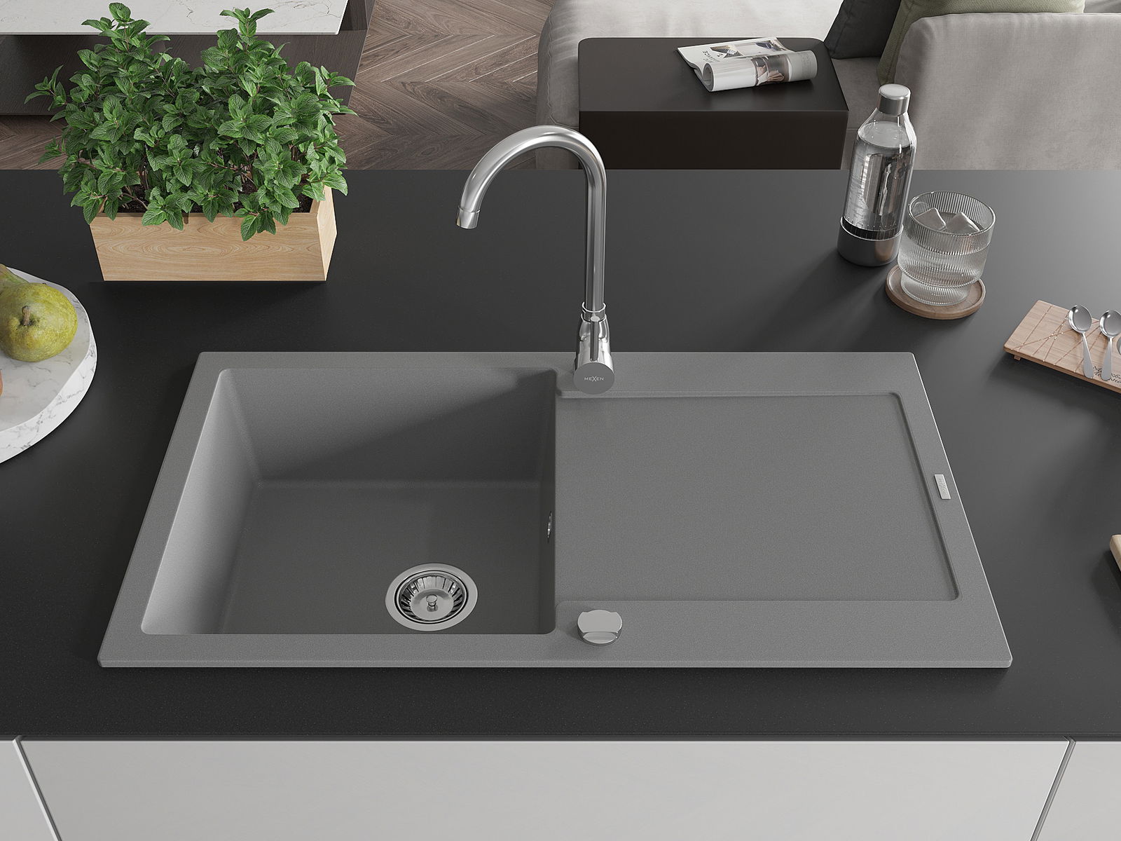 Povrch umývadla je odolný voči škvrnám a sfarbeniu, vďaka čomu sa ľahko čistí a zachováva si svoju farbu po dlhú dobu. Estetický a prakticky dopĺňajúci každú kuchyňu.