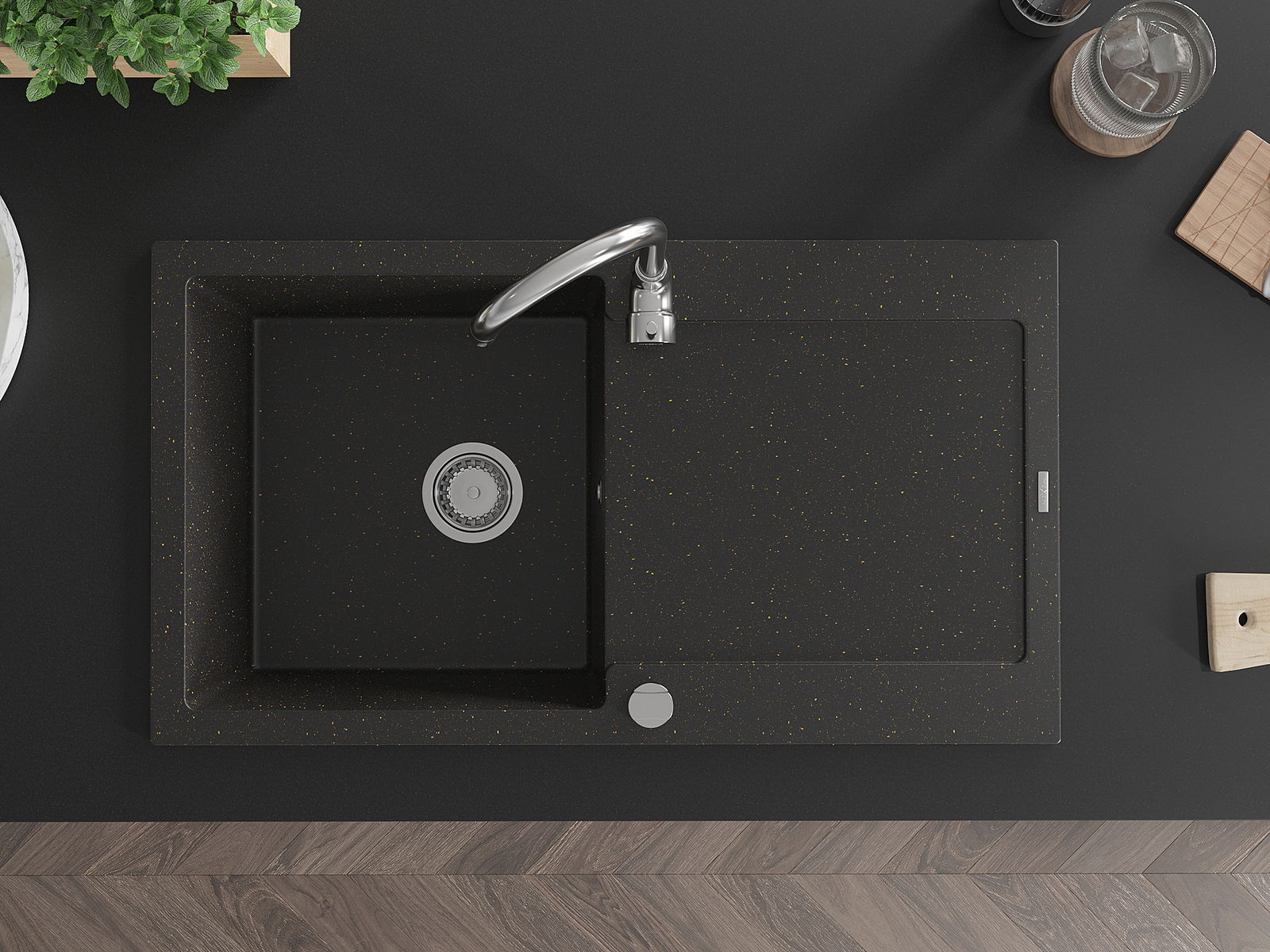 Povrch umývadla je odolný voči škvrnám a sfarbeniu, vďaka čomu sa ľahko čistí a zachováva si svoju farbu po dlhú dobu. Estetický a prakticky dopĺňajúci každú kuchyňu.