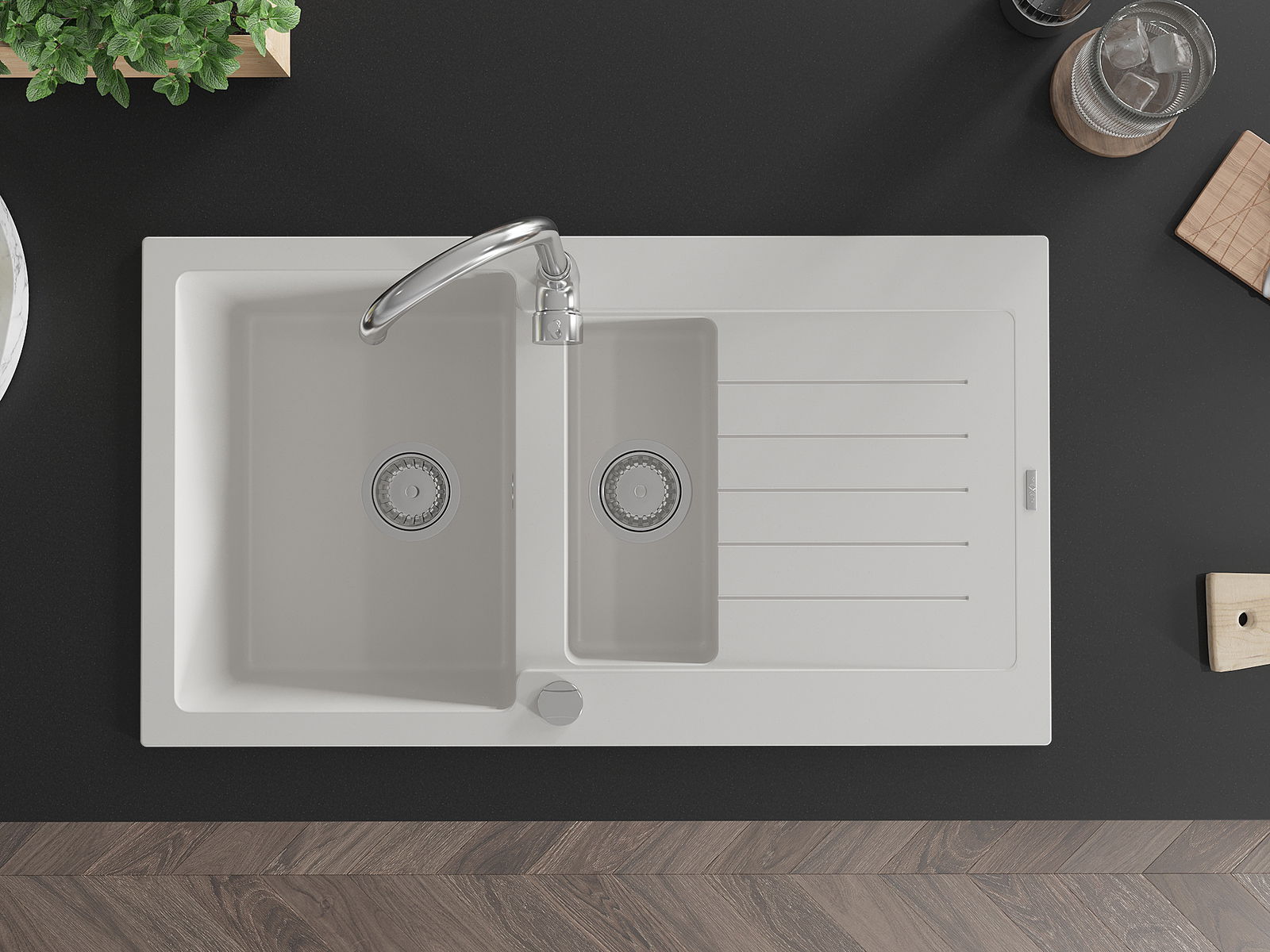 Povrch umývadla je odolný voči škvrnám a sfarbeniu, vďaka čomu sa ľahko čistí a zachováva si svoju farbu po dlhú dobu. Estetický a prakticky dopĺňajúci každú kuchyňu.