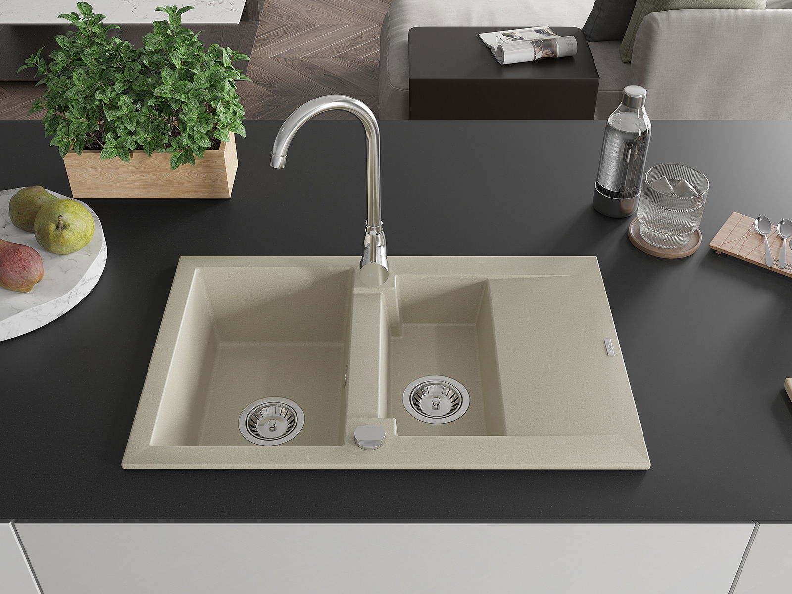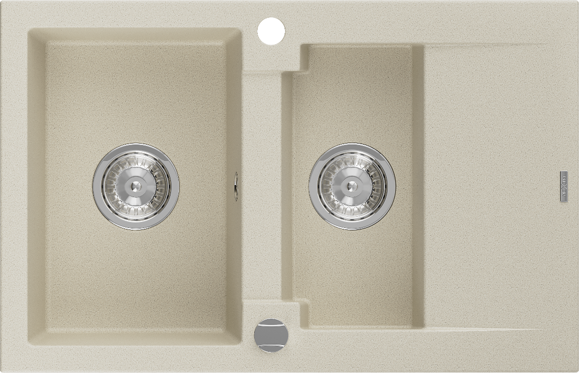 Povrch umývadla je odolný voči škvrnám a sfarbeniu, vďaka čomu sa ľahko čistí a zachováva si svoju farbu po dlhú dobu. Estetický a prakticky dopĺňajúci každú kuchyňu.