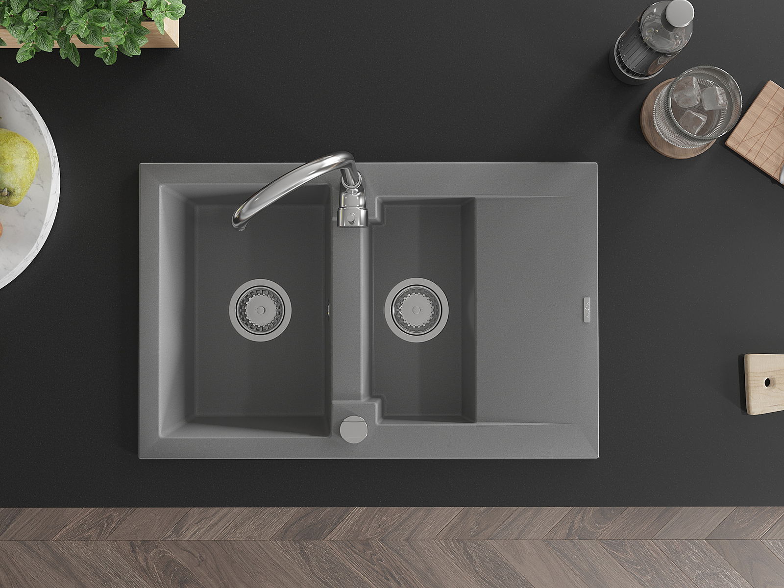 Povrch umývadla je odolný voči škvrnám a sfarbeniu, vďaka čomu sa ľahko čistí a zachováva si svoju farbu po dlhú dobu. Estetický a prakticky dopĺňajúci každú kuchyňu.